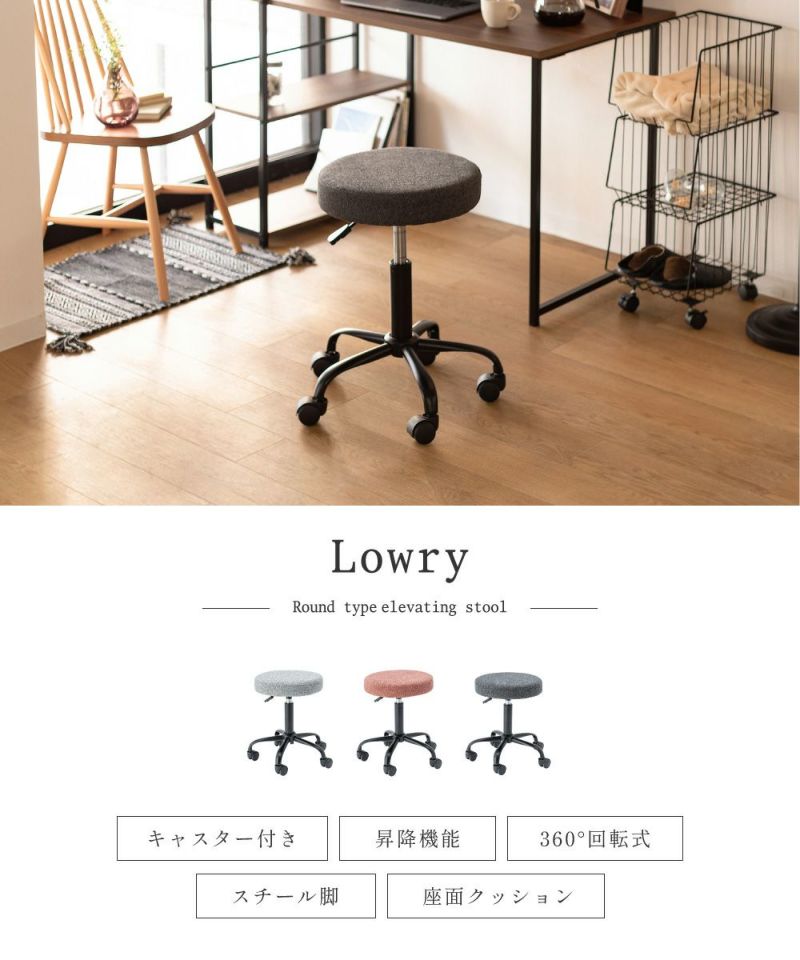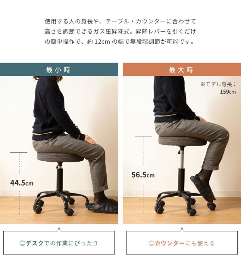 多機能で作業もはかどるチェア カウンターチェア 昇降 回転 360度 ハイスツール 高さ56.5cm|LOWRY