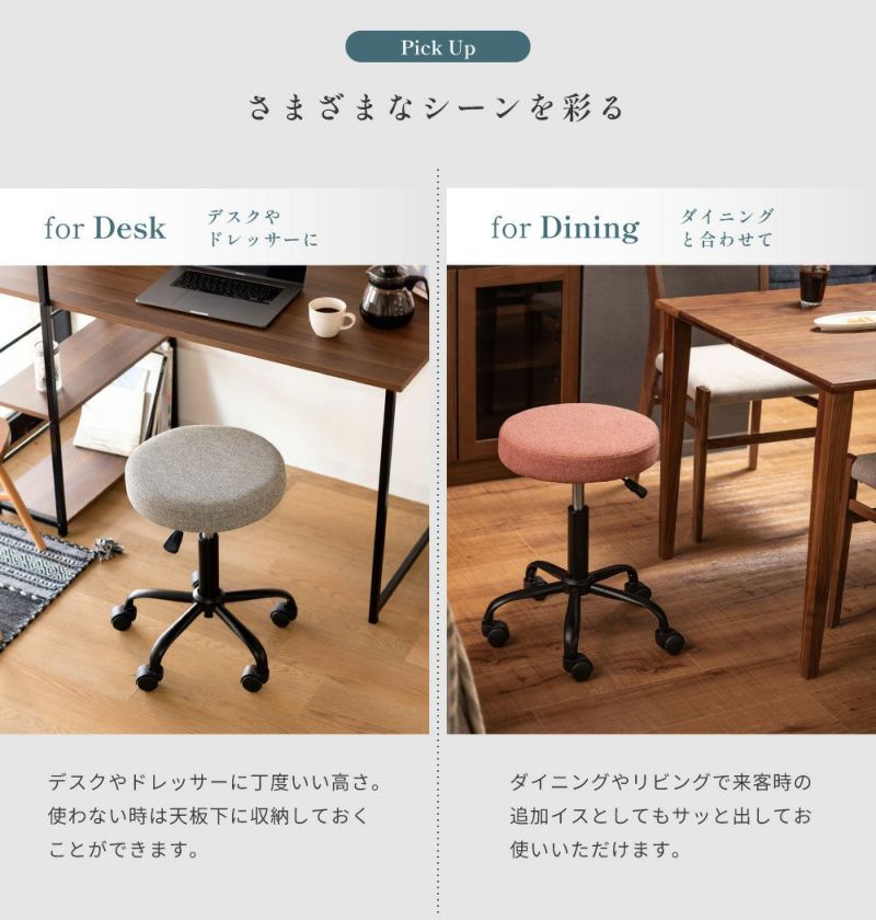 デスクチェアとして使用したり、ダイニングやキッチンに合わせたりと幅広くお使いいただけます。