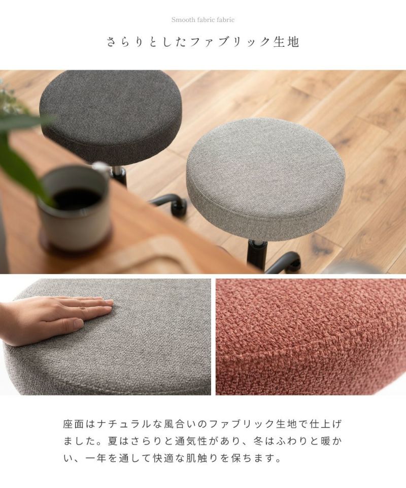 座面はナチュラルな風合いのファブリック生地で仕上げました。