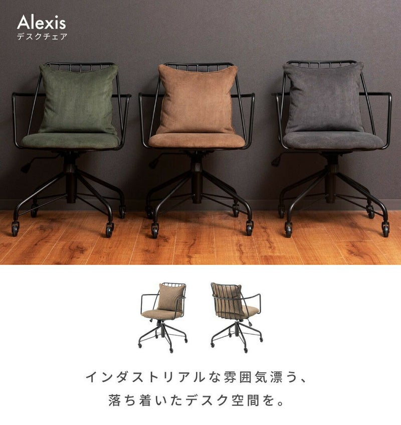 深みある風合いをつくる、きめ細やかなファブリック生地と細いラインを組み合わせた無骨なブラックスチールがインダストリアルな落ち着きある空間を演出するデスクチェア。