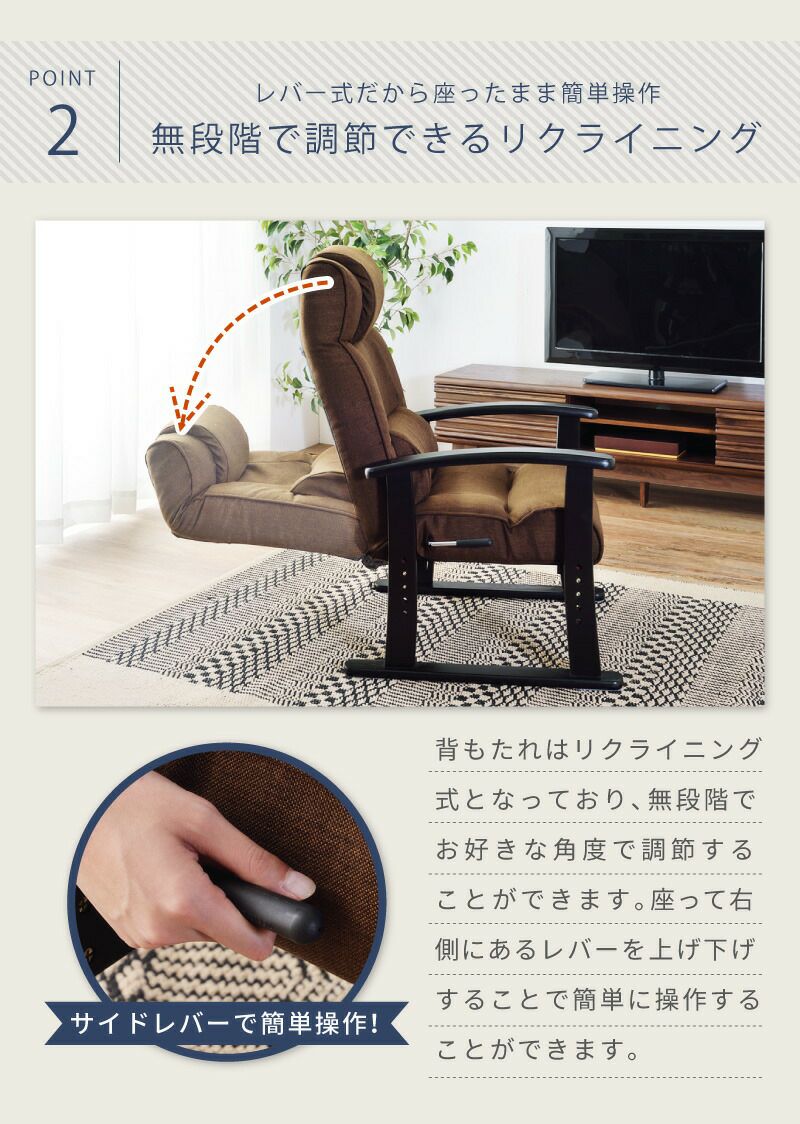 14段階で調節できるリクライニング 高座椅子 リクライニング 4段階ギア 高さ調節 チェア リクライニングソファ|Zara