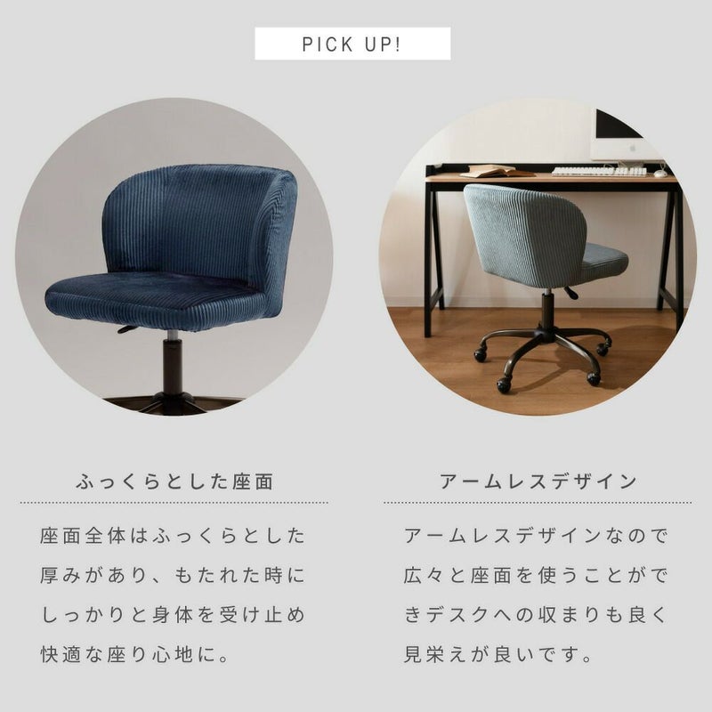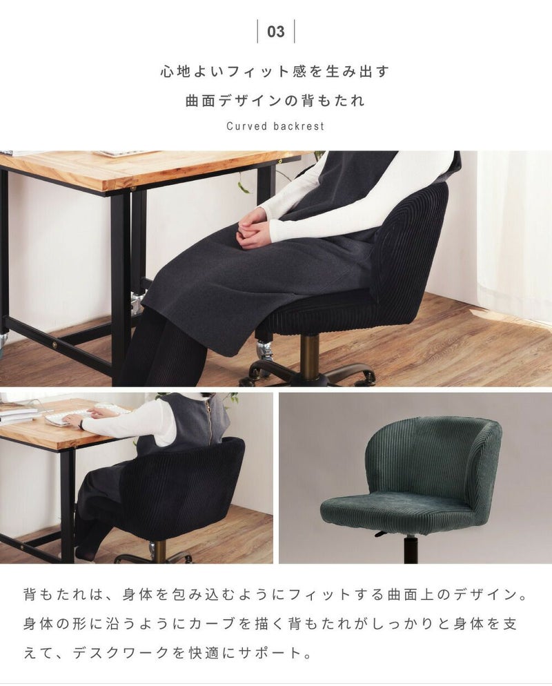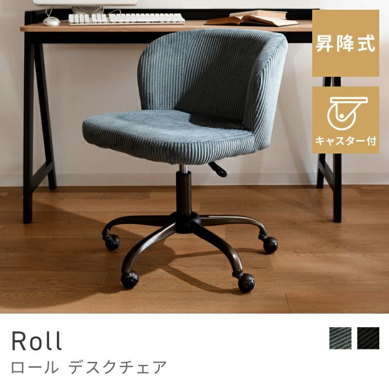 コーデュロイが映える座面 デスクチェア 昇降 高さ調節 360度 回転 おしゃれ チェア キャスター|Roll