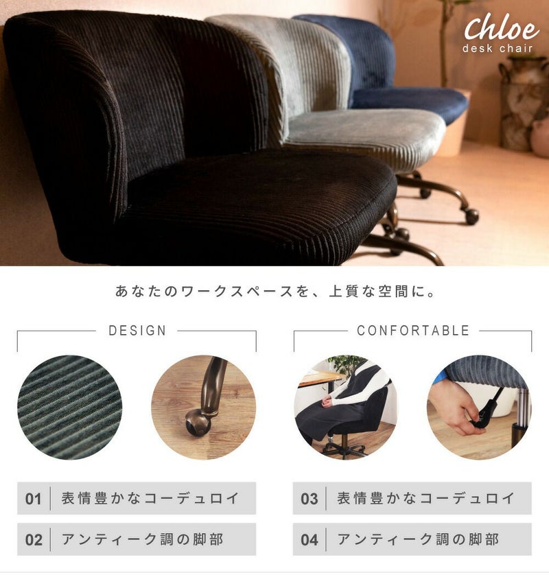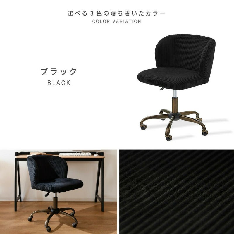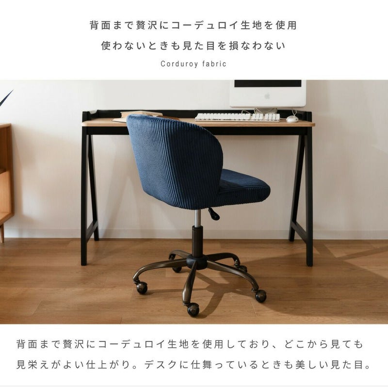 デスクチェア 回転 昇降 高さ調節 ガス圧 キャスター オフィスチェア コーデュロイ 肘無し 椅子 おしゃれ ヴィンテージ 黒 紺 シンプル ゆったり アンティーク