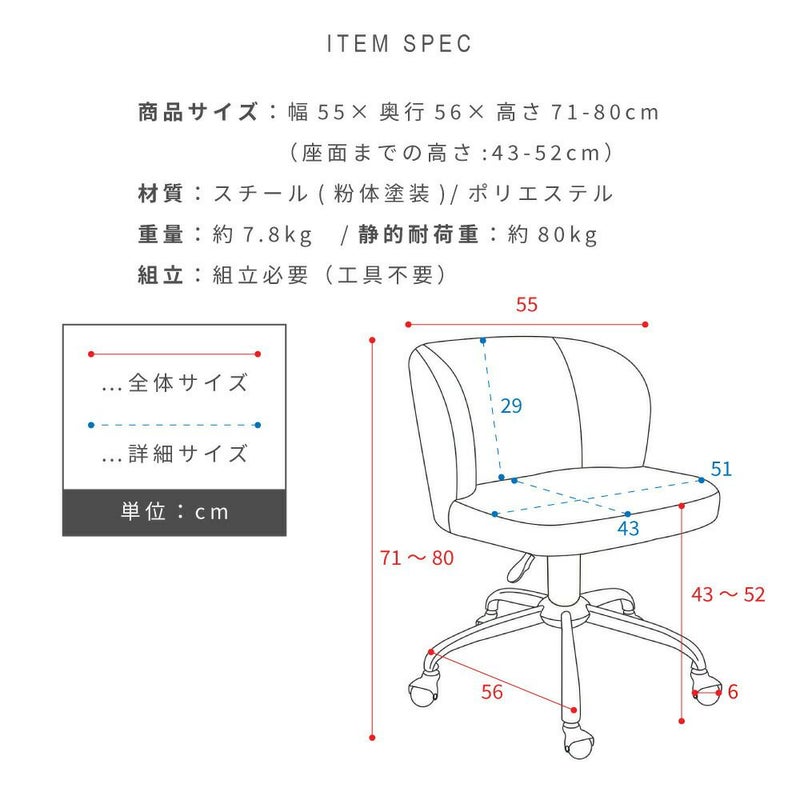 座面までの高さ:43-52cm