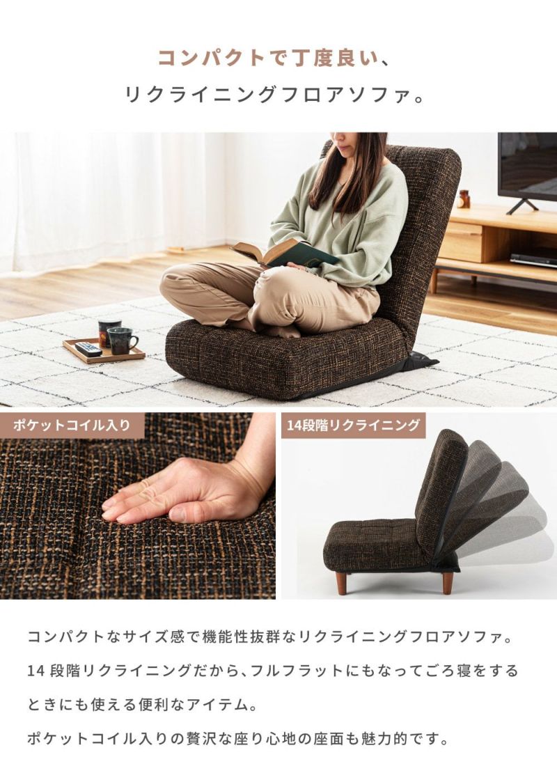 コンパクトなサイズ感で機能性抜群なリクライニングフロアソファ。