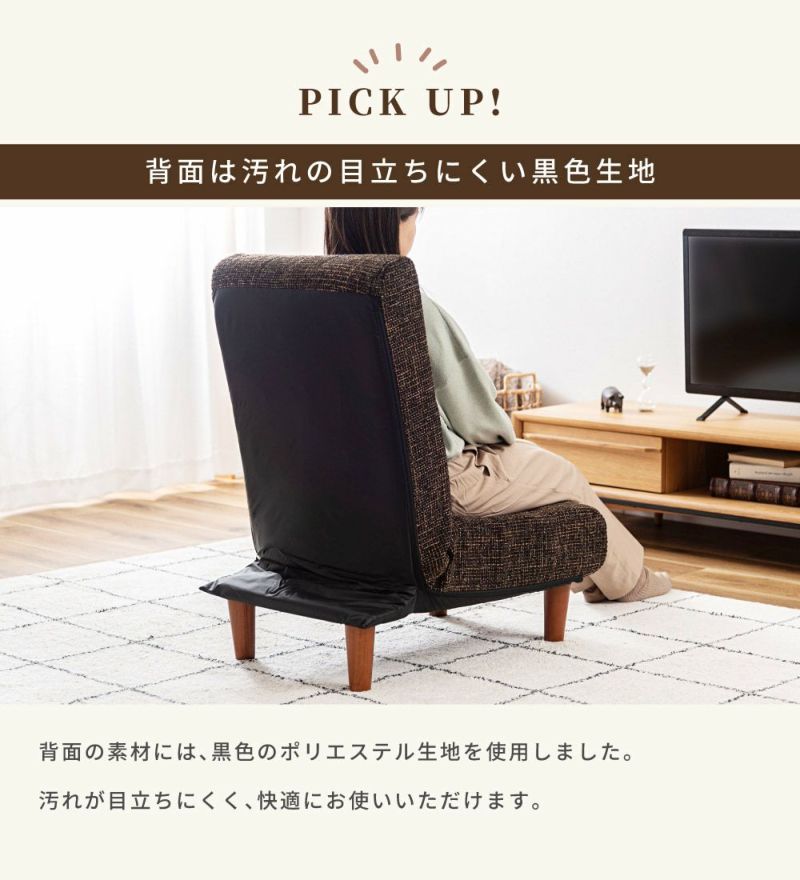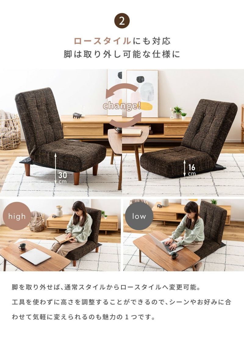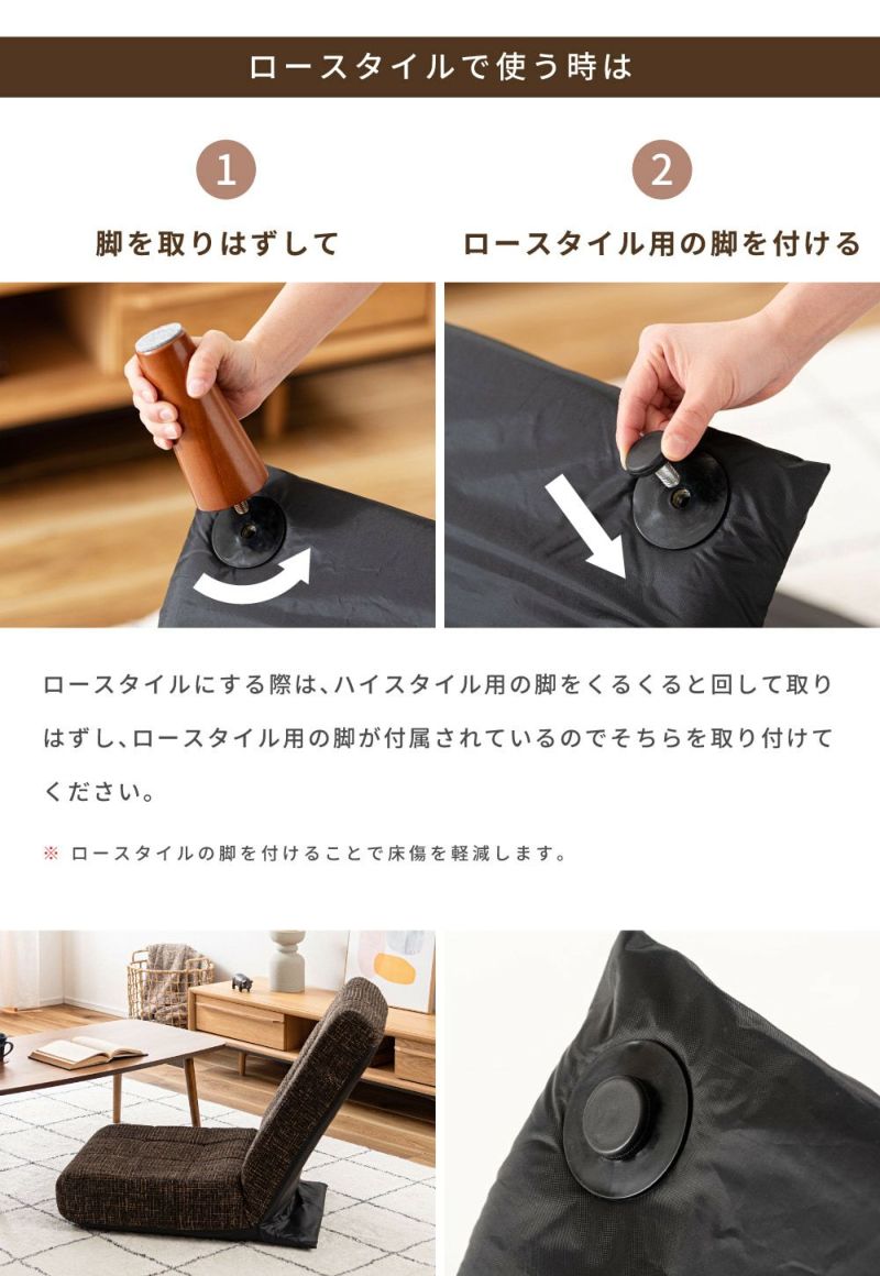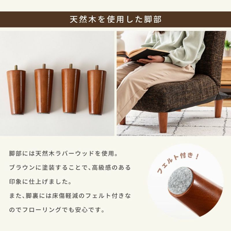 座椅子 座いす リクライニング ポケットコイル フロアチェア フロアチェアー フロアソファ 1人掛け 一人掛け 14段階リクライニング ハイバック ふかふか ローソファ 脚取り外し 木脚 布張り 布地 ブラウン 茶色 混色 木脚 天然木 30cm 座面高30