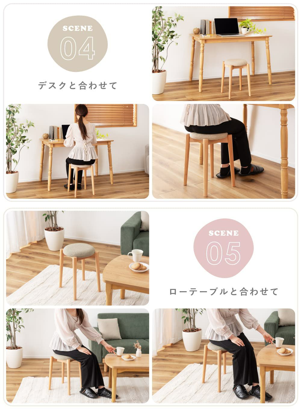 ●ニュアンスカラー×天然木がバランスのいいスツール