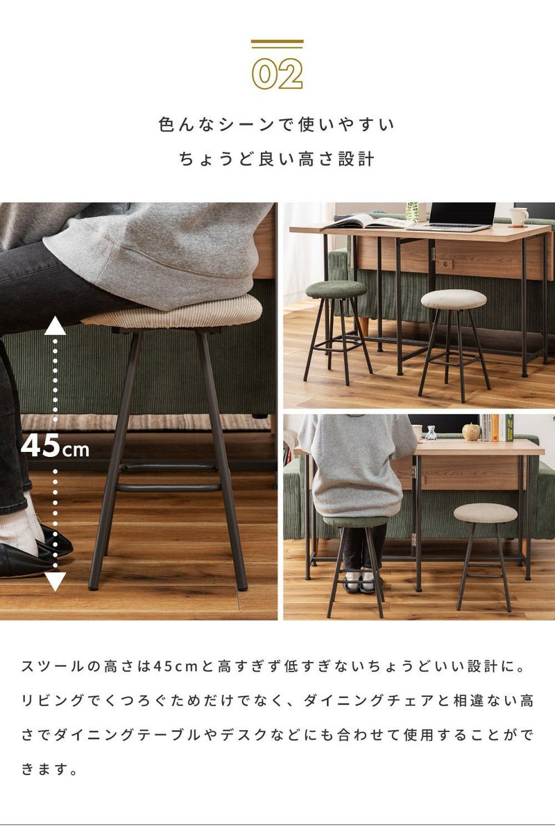 ●手触りの良いコーデュロイ生地がおしゃれなスツール。