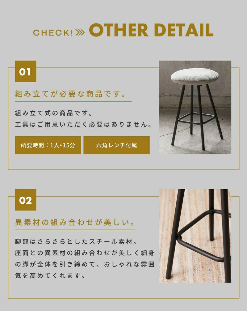 可愛いくすみカラーのスツール スツール おしゃれ コーデュロイ 高さ45cm 丸 丸型 円型 円 まる スチール レザー ファブリック モダン|VALEN