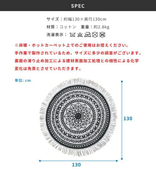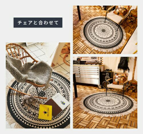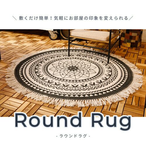 ラグマット 円形 コットン 綿 幾何学模様 模様 おしゃれ リビング 寝室 ベッド 北欧 ナチュラル モダン エスニック 滑り止め 手作り フリンジ かわいい 丸 ラグ