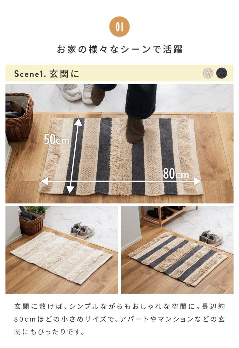 マット 50×80 シャギー コットン ナチュラル 玄関マット 綿 シンプル おしゃれ マリン ボーダー ストライプ 白 北欧 モダン かわいい お風呂 脱衣所 バスマット