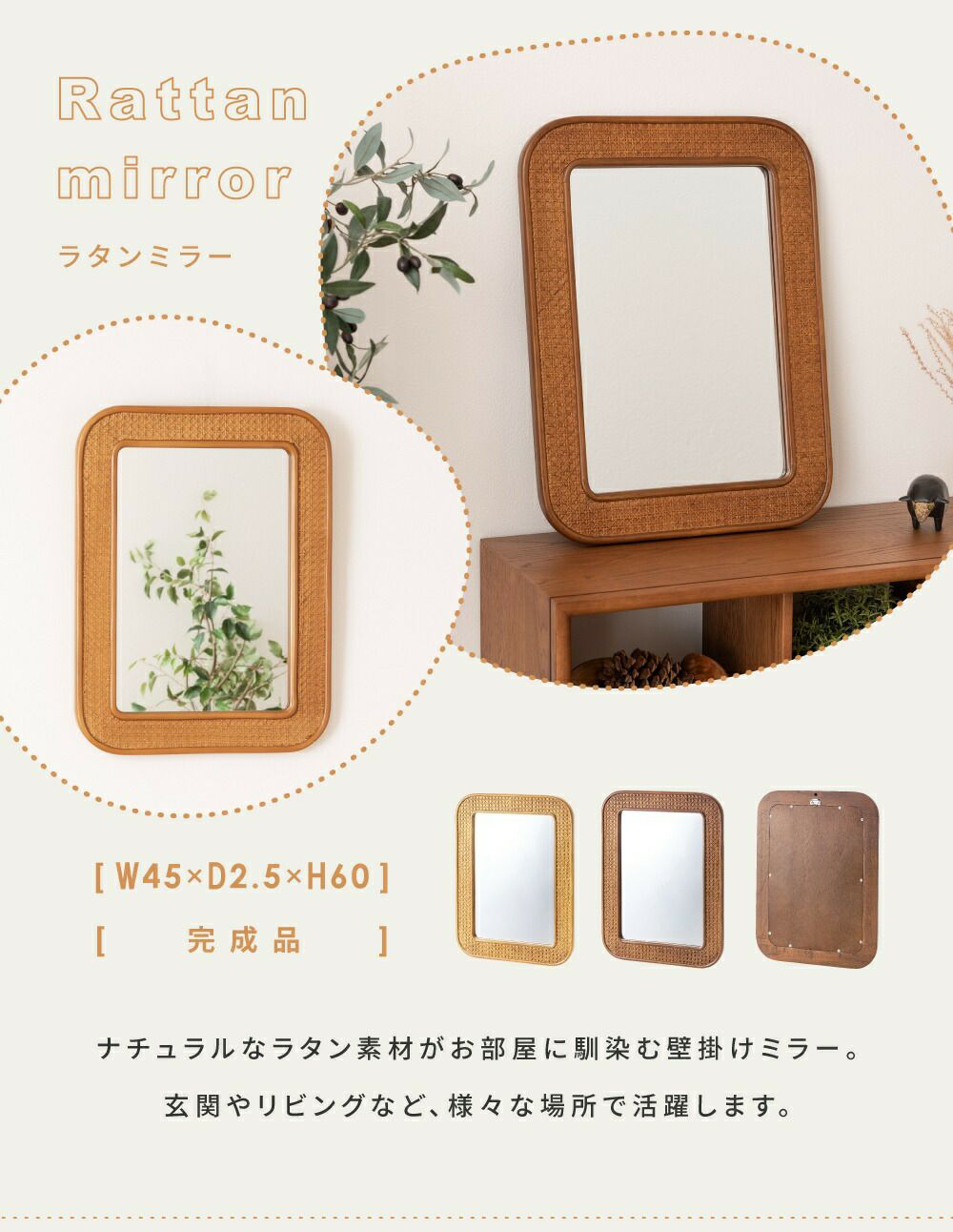 他の画像を見る 天然素材のやさしい風合い残るラタンミラー 鏡 ミラー おしゃれ 丸型 ラタン 壁掛け ナチュラル かわいい シンプル|FLEUR 完成品 ¥ 7,744 税込 (0) お気に入りに登録する