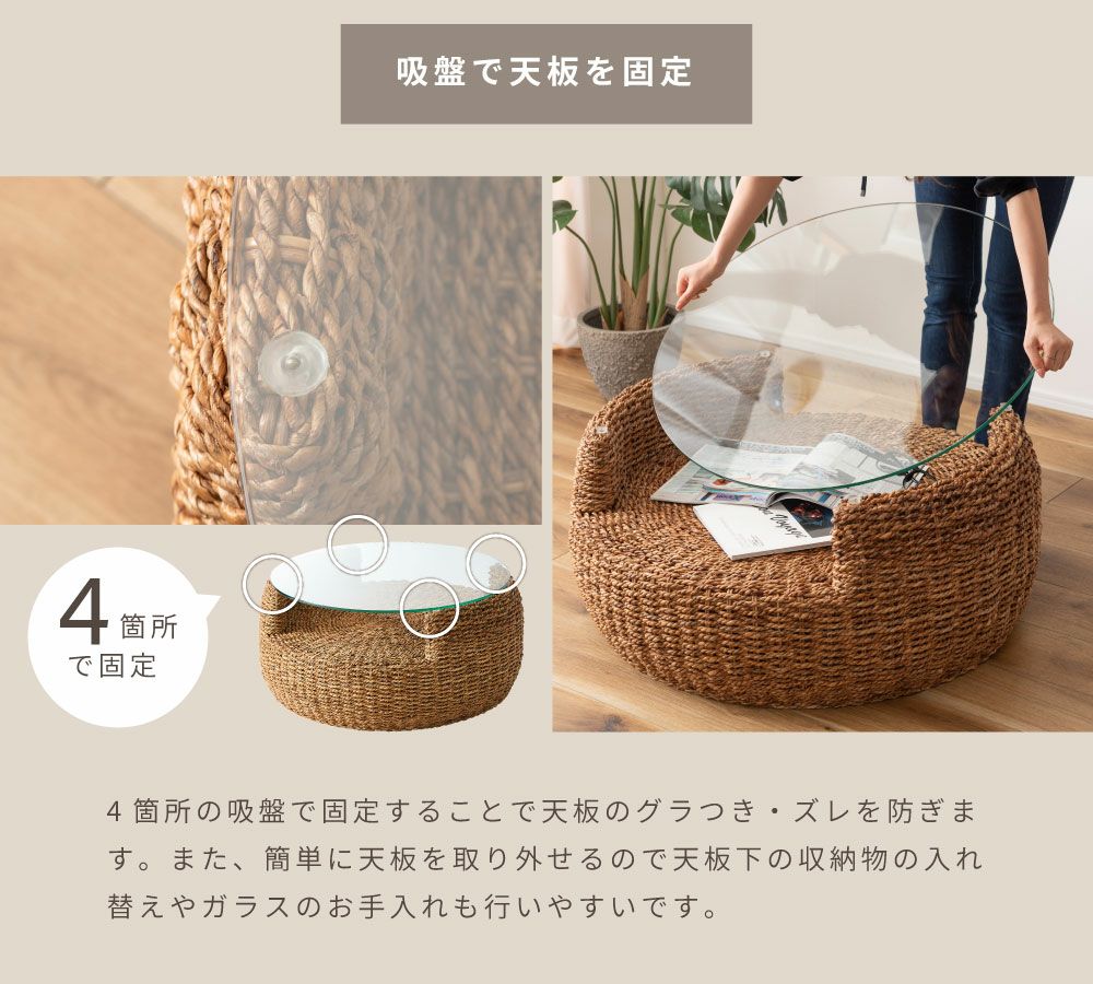 他の画像を見る アバカとガラスの天板が爽やかなセンターテーブル ローテーブル 幅80cm センターテーブル 丸テーブル ガラステーブル|DELIX 完成品 ¥ 54,120 税込 (0) お気に入りに登録する