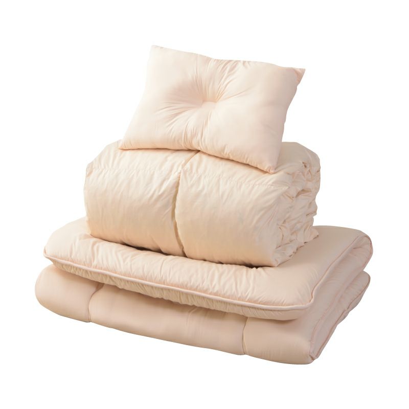 敷き布団カバー:ポリエステル(ピーチスキン加工)/ポリエステル(ピーチスキン加工)