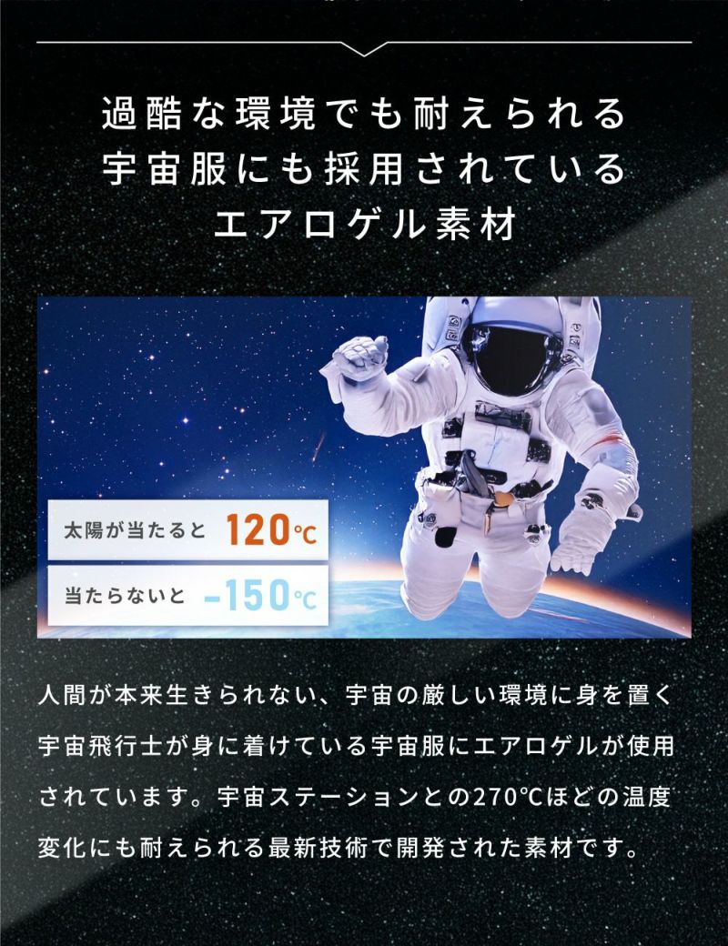 驚異的な断熱性と軽さで、宇宙服にも使用されるエアロゲルを採用。