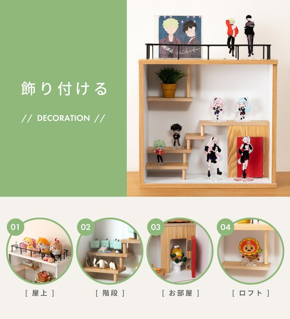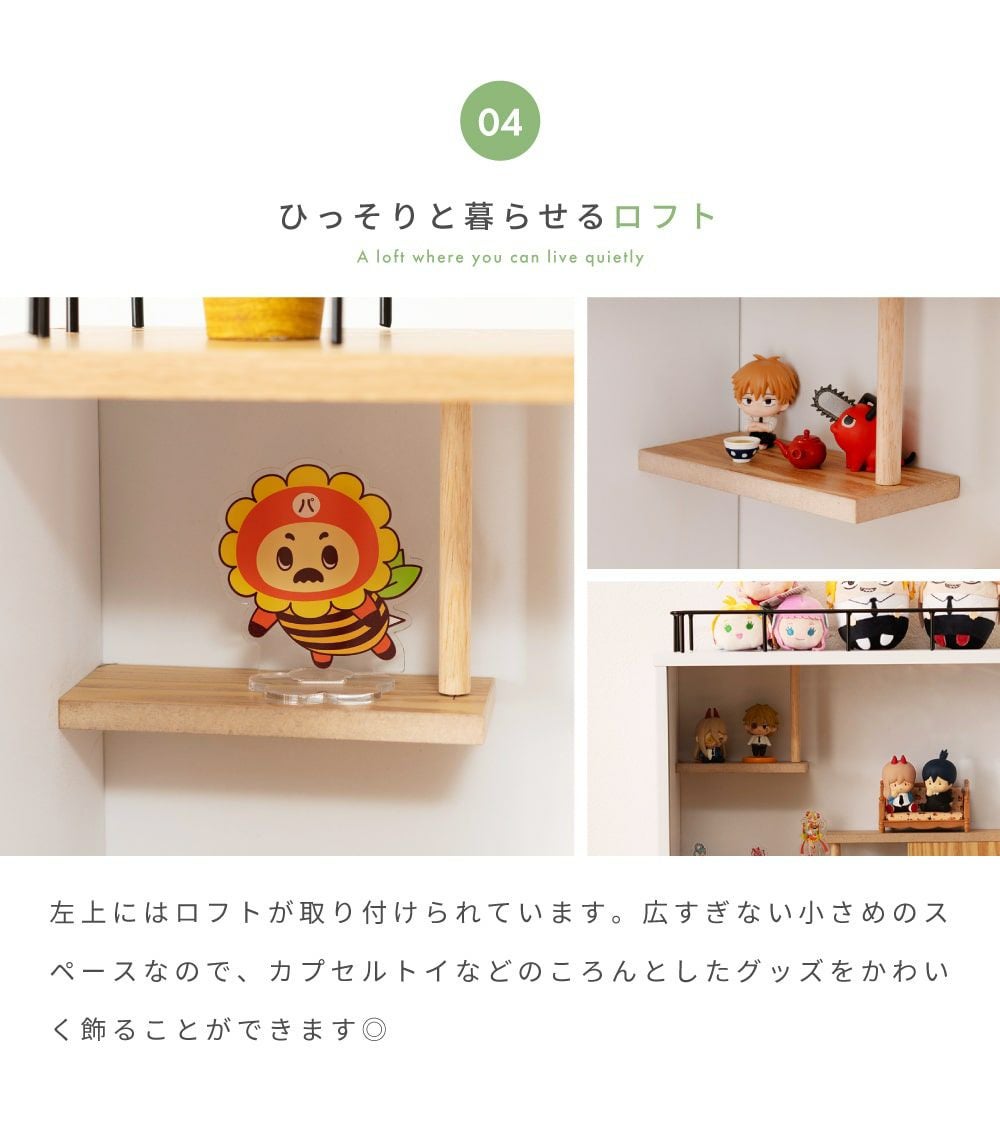 他の画像を見る お家風に階段やロフトがついたコレクションシェルフ コレクションシェルフ 3段 フィギュア ケース ガラス 推し活 棚 グッズ 送料無料 ¥ 21,500 税込 (0) お気に入りに登録する