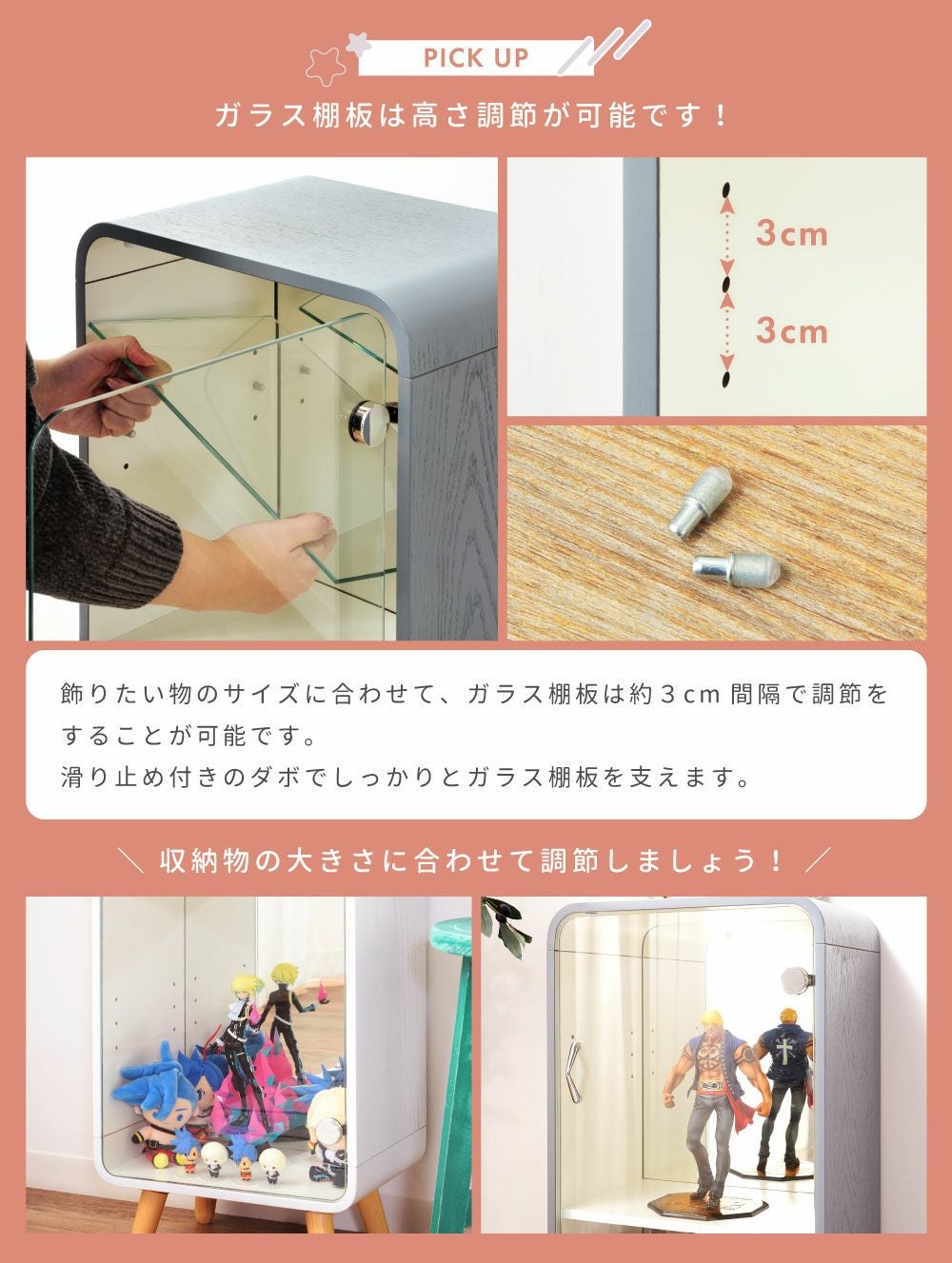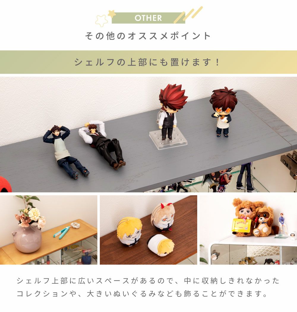 他の画像を見る 背面に紙を挟めるから、背景にもできる コレクションシェルフ 2段 フォトフレーム ガラス 推し活 棚 グッズ 収納 送料無料 ¥ 11,500 税込 〜 ¥ 税込 (0) お気に入りに登録する