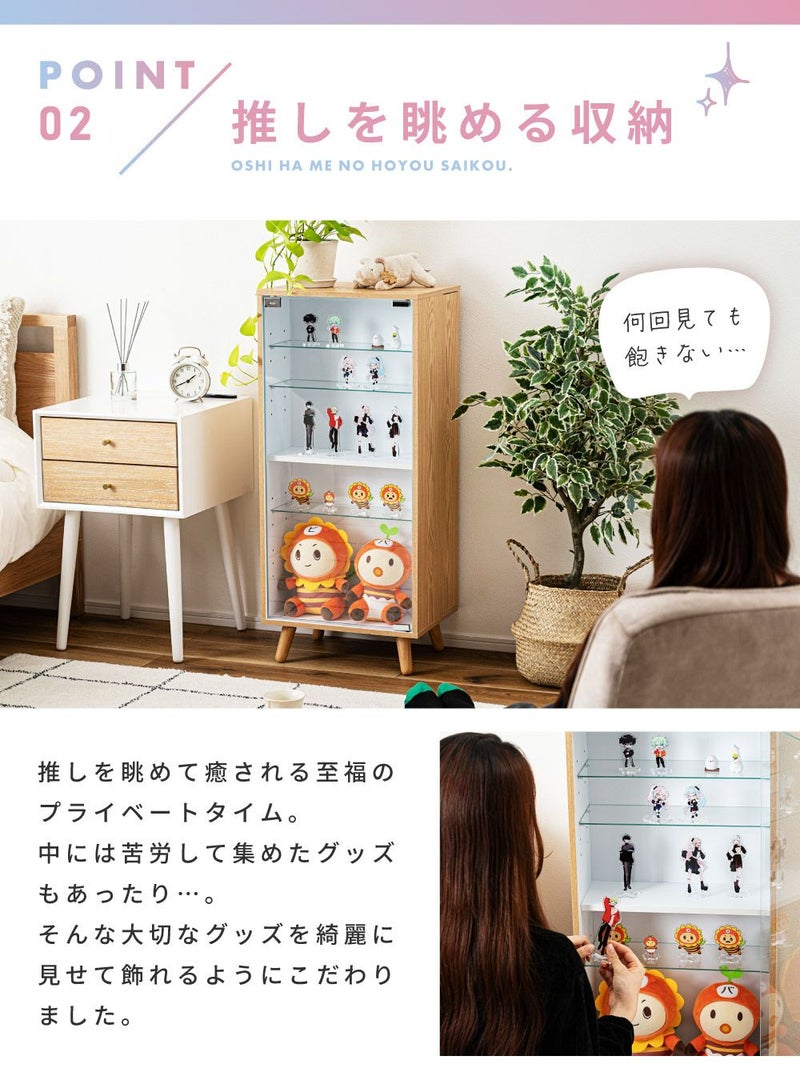 コレクションシェルフ 隠し収納 可動棚 プッシュ式 ガラス 5段 フィギュア アクスタ 収納 ディスプレイ 推し棚 推し活 扉つき 木製 ナチュラル 同人誌 オタク