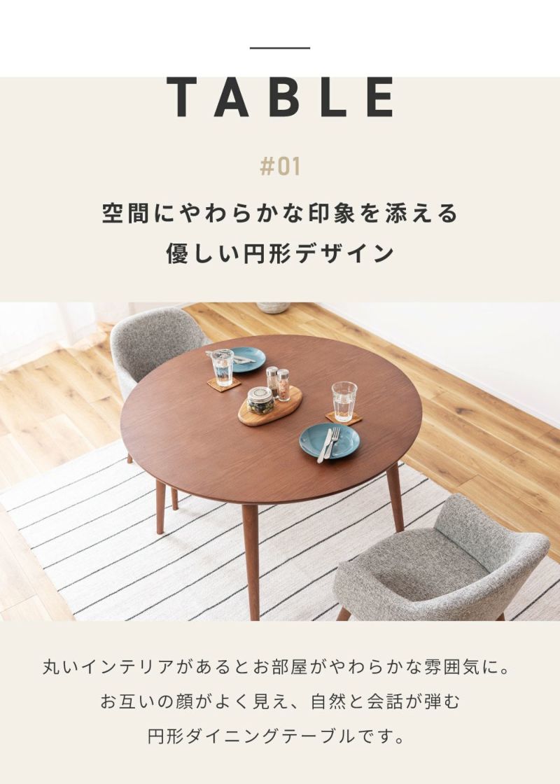 家族や友人との時間を特別なものにする、円形ダイニングテーブルセット。