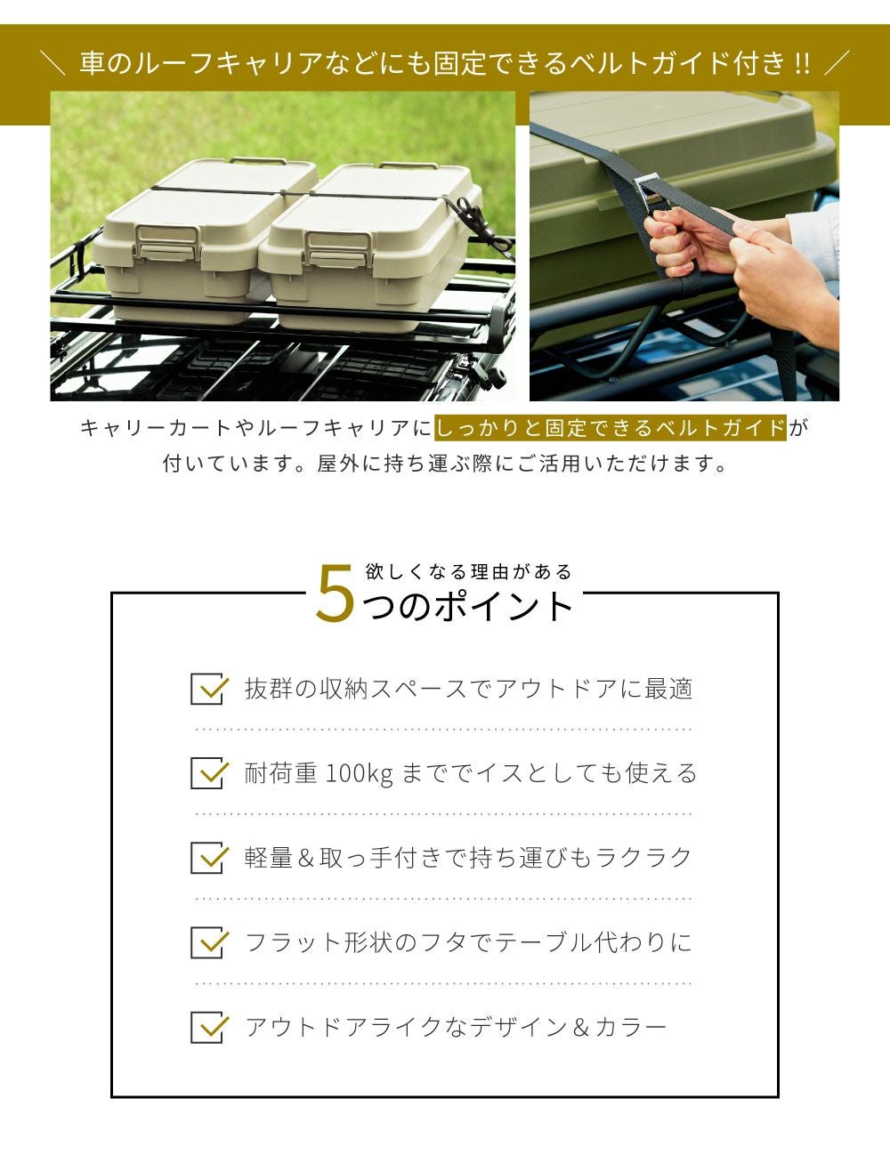 他の画像を見る キャンプ必携の収納コンテナ [収納ケース+天板セット] トランクカーゴ テーブルトップ セット 容量70L|TRUNK CARGO 送料無料 ¥ 8,606 税込 (0) お気に入りに登録する