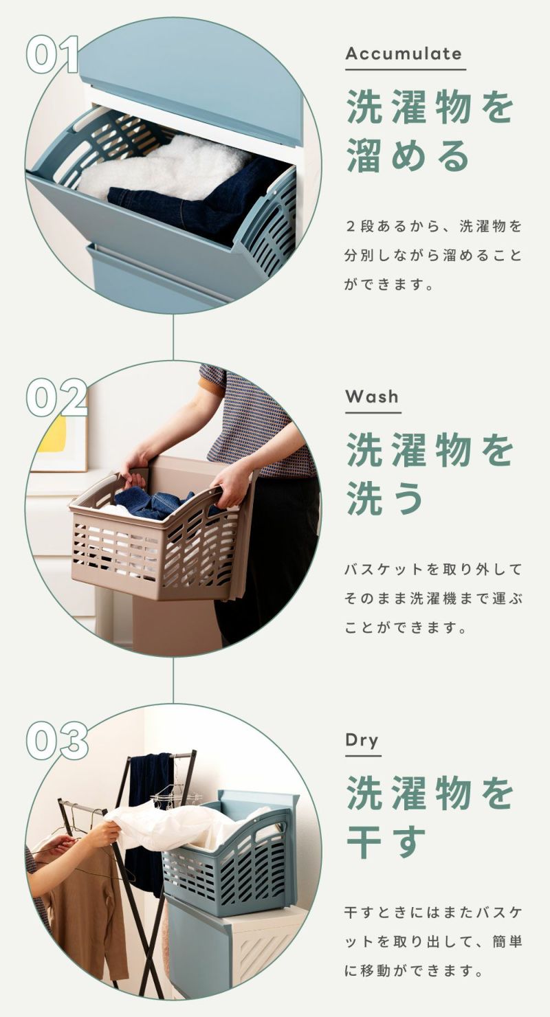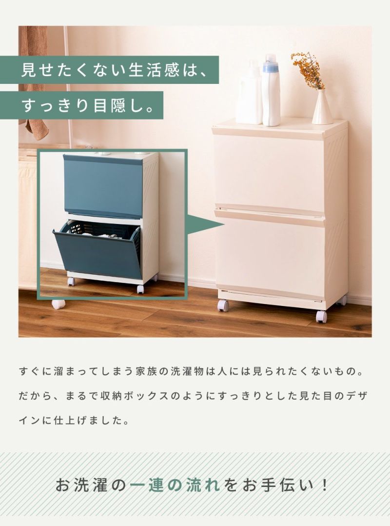 見せずに隠せる洗濯収納 [日本製] ランドリーバスケット 2段 スリム 大容量 キャスター付き 洗える|Pete