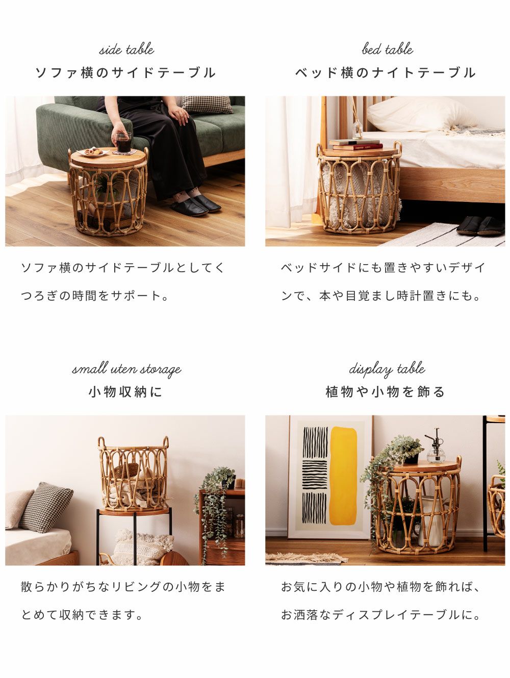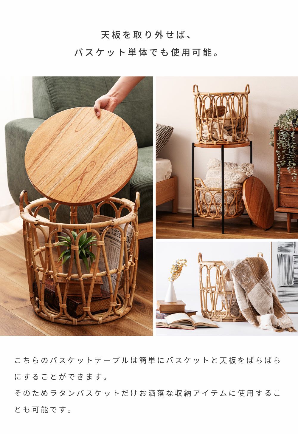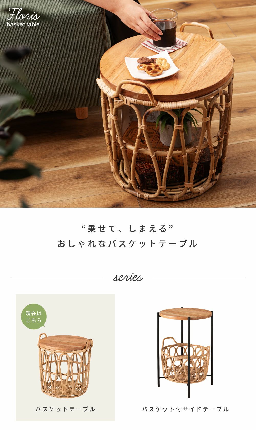 他の画像を見る テーブルも収納もこれひとつで サイドテーブル テーブル バスケットテーブル バスケット 収納 ラタン かご|TYNA 完成品 販売価格 ¥ 18,920 税込 (0) お気に入りに登録する