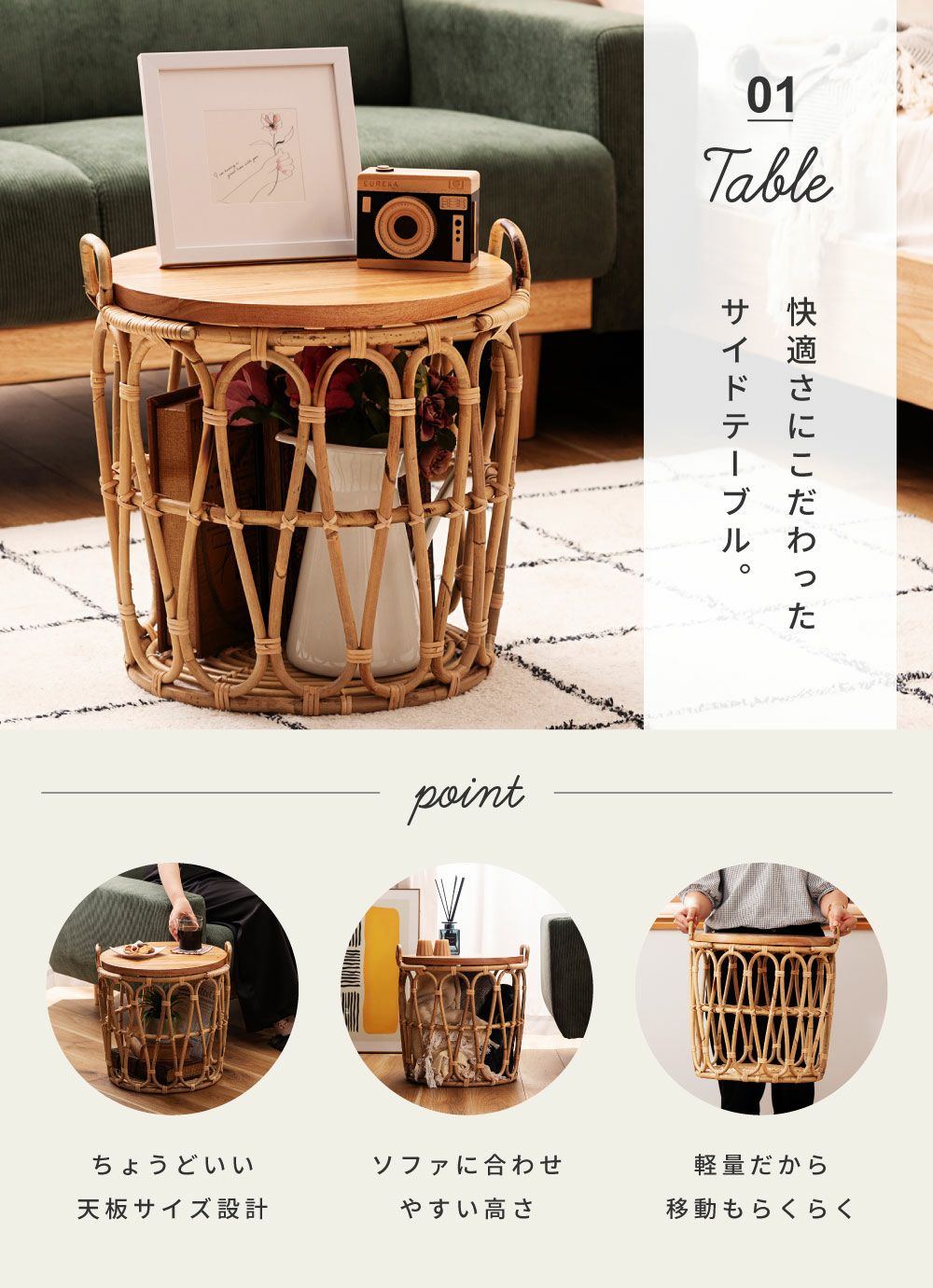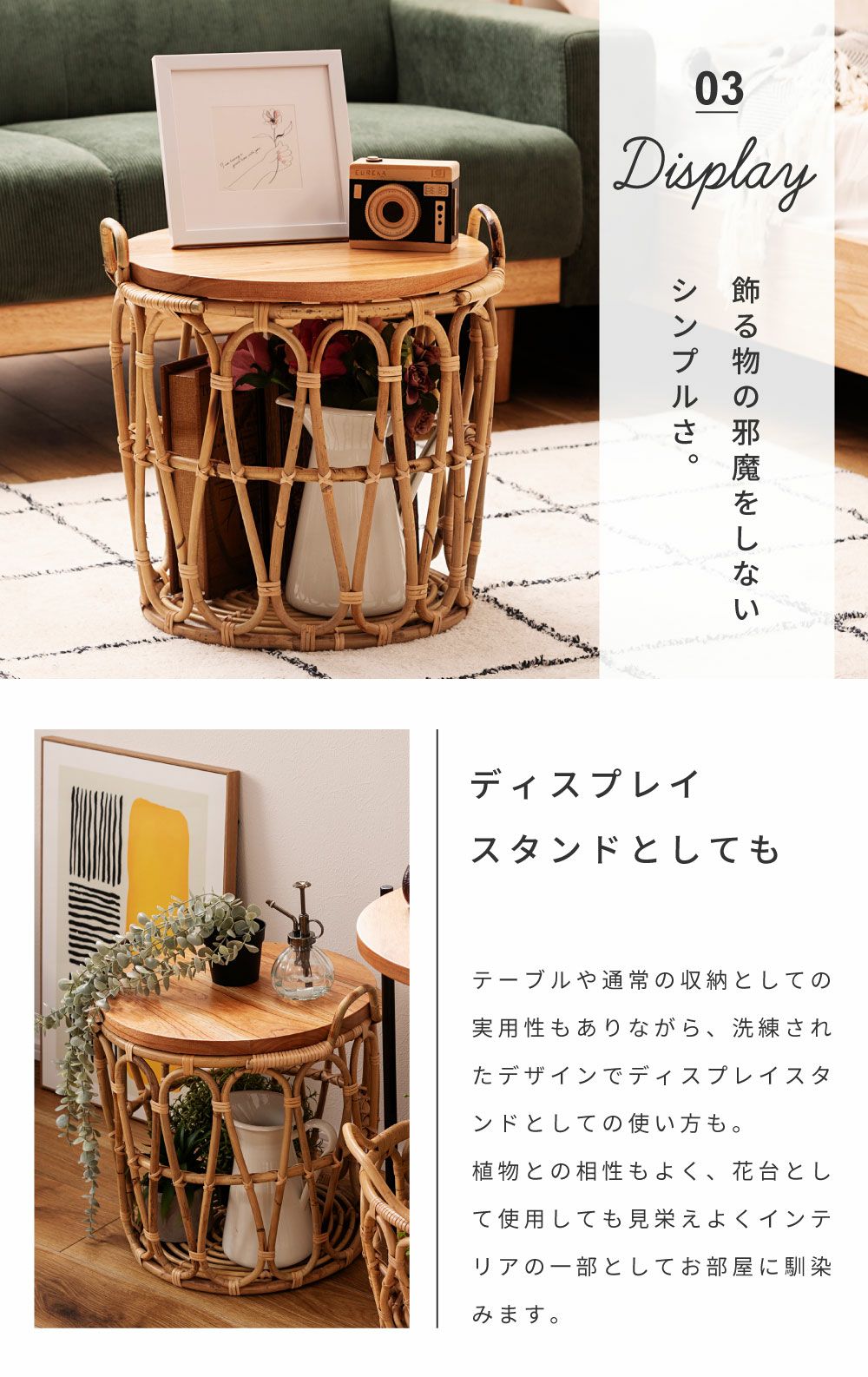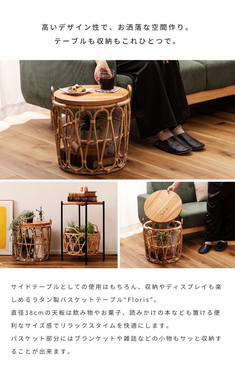他の画像を見る テーブルも収納もこれひとつで サイドテーブル テーブル バスケットテーブル バスケット 収納 ラタン かご|TYNA 完成品 販売価格 ¥ 18,920 税込 (0) お気に入りに登録する