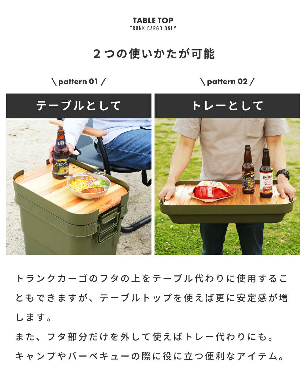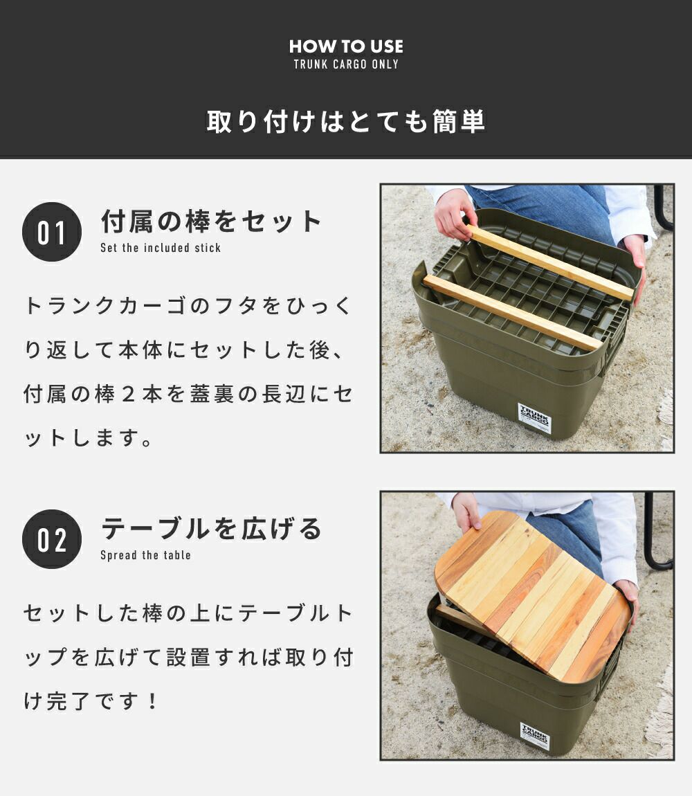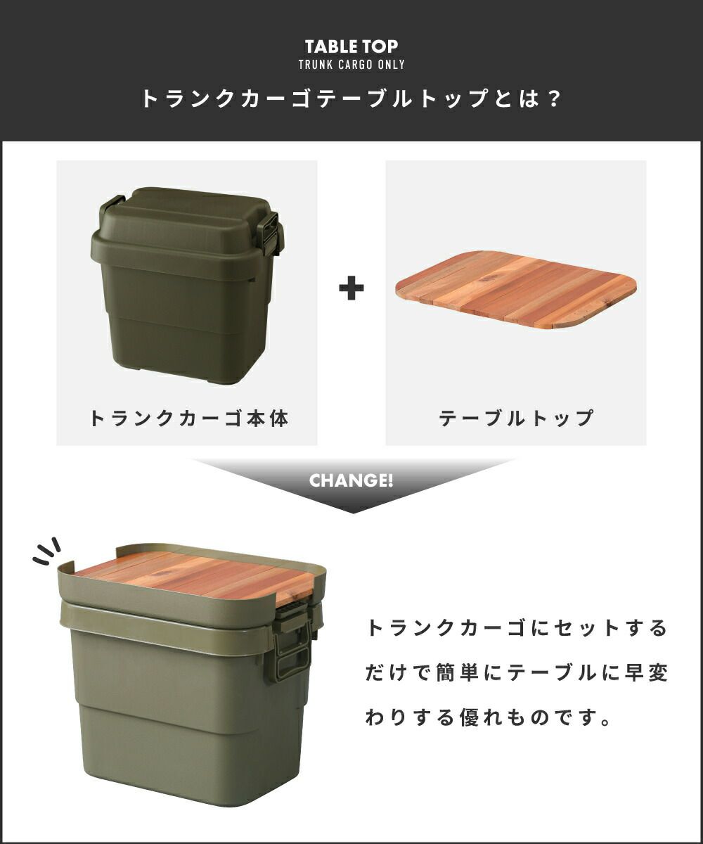 他の画像を見る キャンプ必携の収納コンテナ [収納ケース+天板セット] トランクカーゴ テーブルトップ セット 容量70L|TRUNK CARGO 完成品 販売価格 ¥ 8,606 税込 (0) 詳細を見る お気に入りに登録する