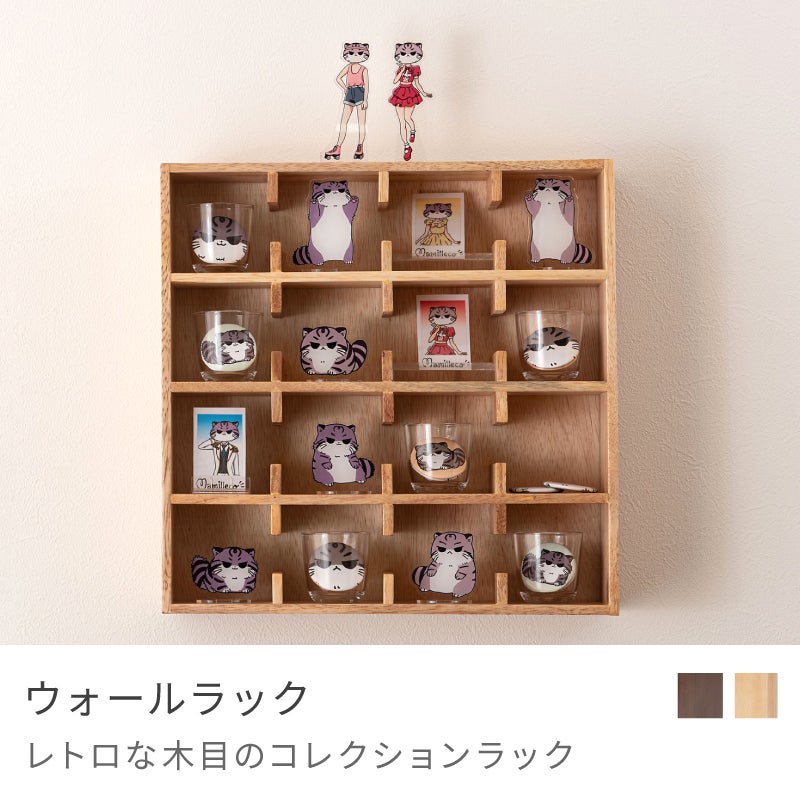 レトロな木目のコレクションラック ウォールラック ケース コレクション収納 ウォールラック 棚 マグカップ収納 画材 グッズ