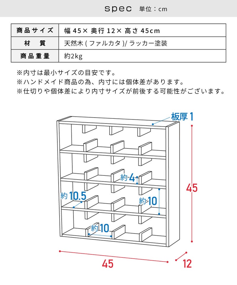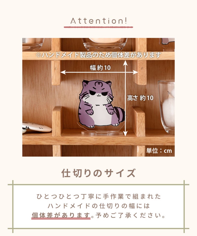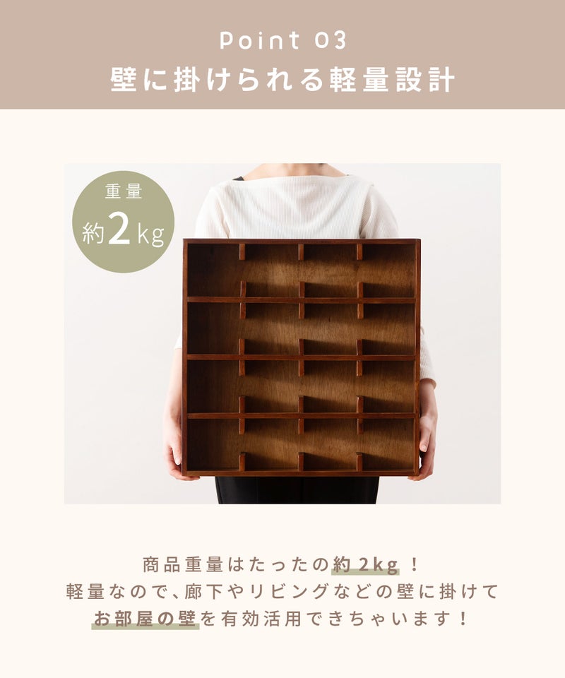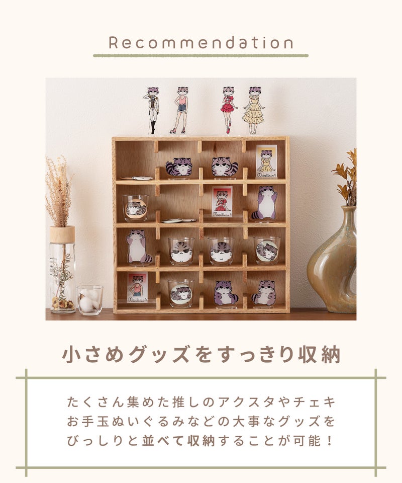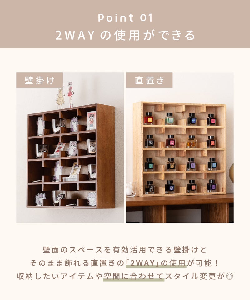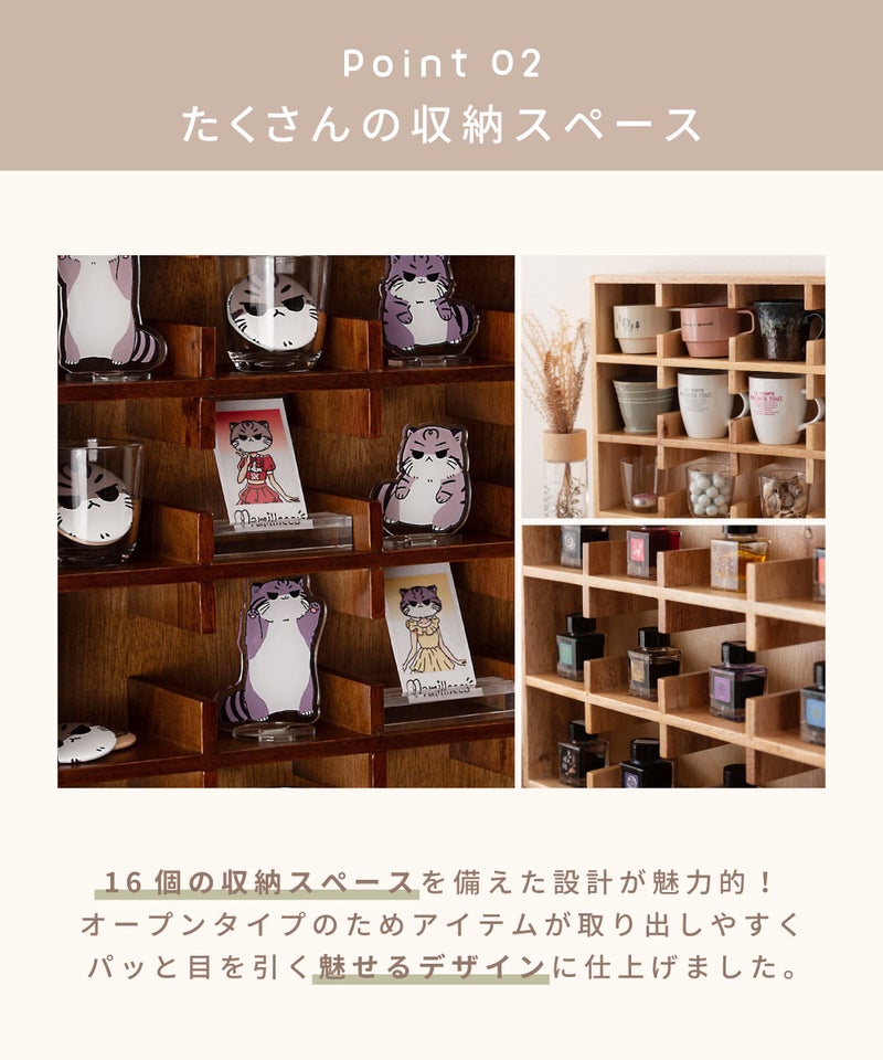 多種のラインナップをコレクションするのに適した升目の形状です。