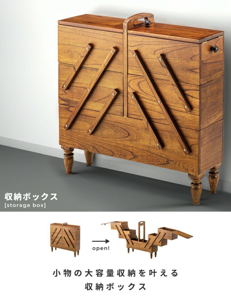 収納ケース ボックス ハイタイプ おしゃれ ケース 収納 収納ボックス ディスプレイ アンティーク 取っ手 持ち手 持ち運び 天然木 木製 棚 展開 省スペース 小物