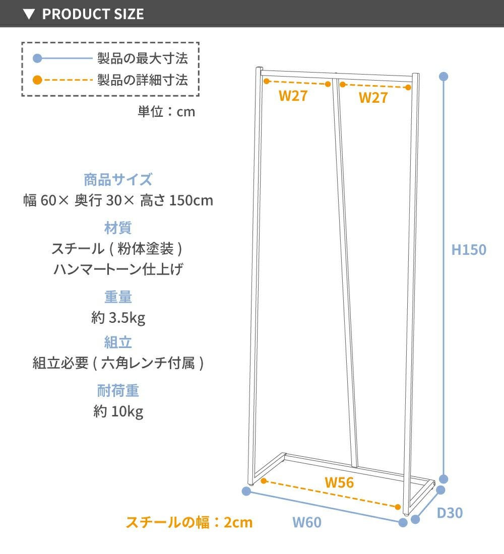 他の画像を見る 無駄をとことん省いたシンプルデザイン ハンガーラック 高さ162cm 部屋干し 洋服掛け コート おしゃれ スリム|TEYO 送料無料 ¥ 7,304 税込 (0) お気に入りに登録する