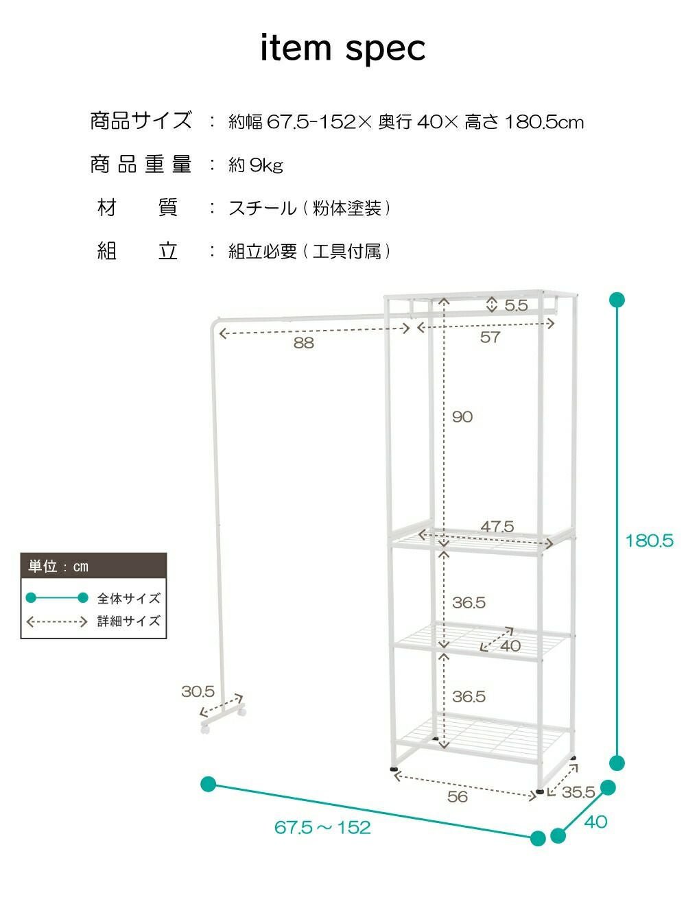 他の画像を見る 使い方に合わせて伸ばせるハンガーラック ハンガーラック 高さ180.5cm 伸縮式 収納棚 3段 ラック 部屋干し|IREL 送料無料 ¥ 25,960 税込 (0) お気に入りに登録する