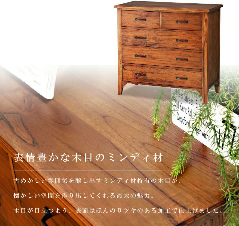 ミンディ材の優しい表情 チェスト 4段 幅80cm 引き出し 収納 タンス アンティーク|Tim