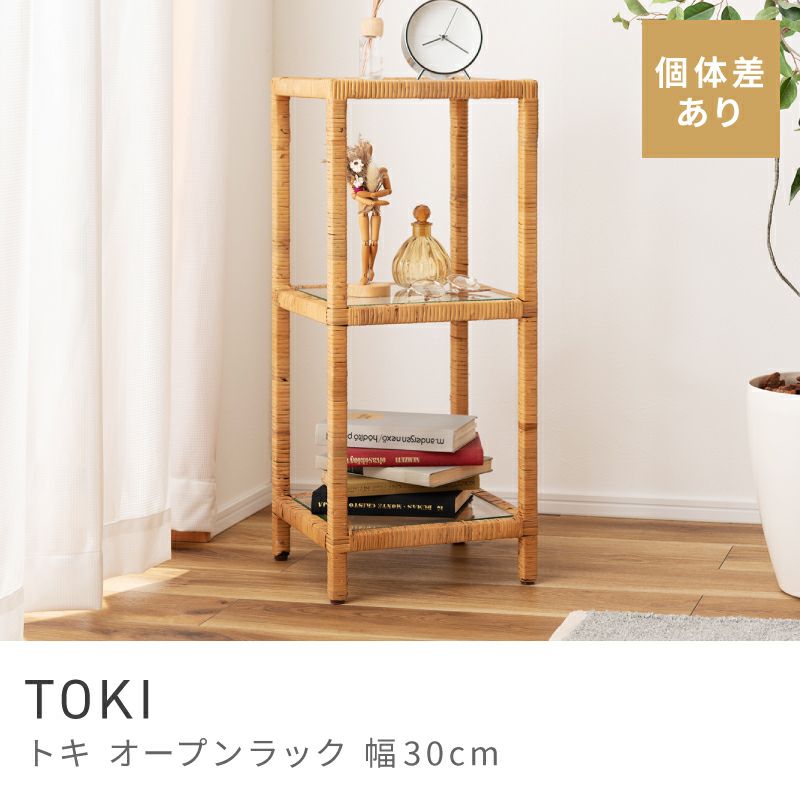 軽やかな印象に仕上げたガラスシェルフ オープンラック 3段 シェルフ 収納 棚 ナイトテーブル サイドテーブル|TOKI