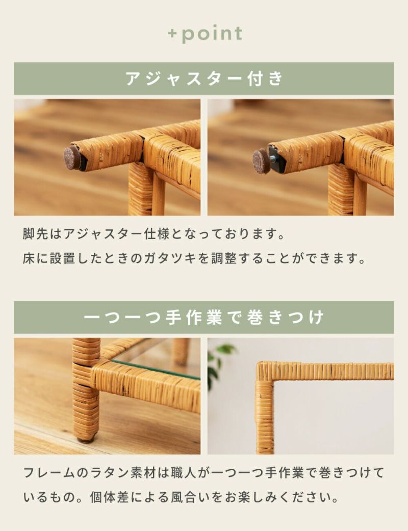 材質 天然ラタン/ラッカー塗装/スチール/5mm強化ガラス
