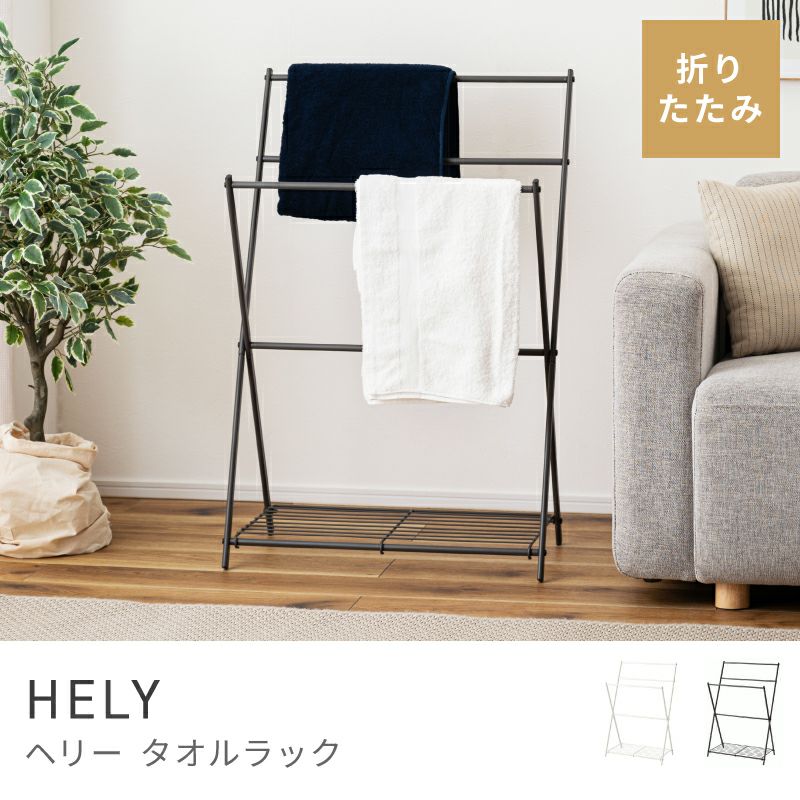 スタイリッシュなタオルラック ハンガーラック 部屋干し スリム 折りたたみ 棚板付 2本 おしゃれ|HELY