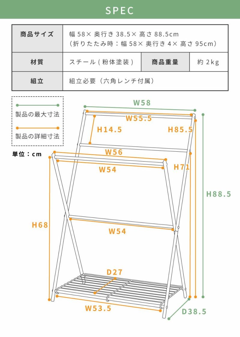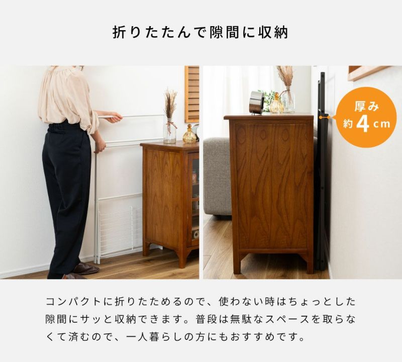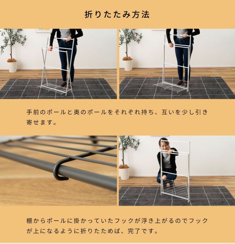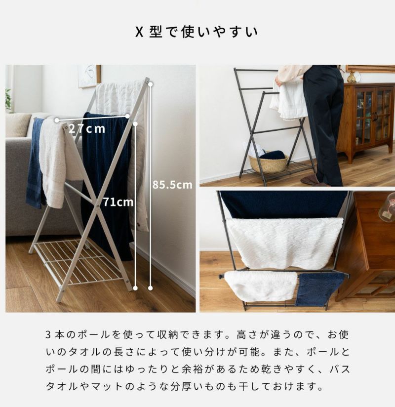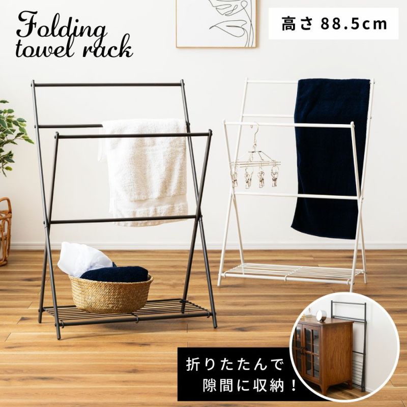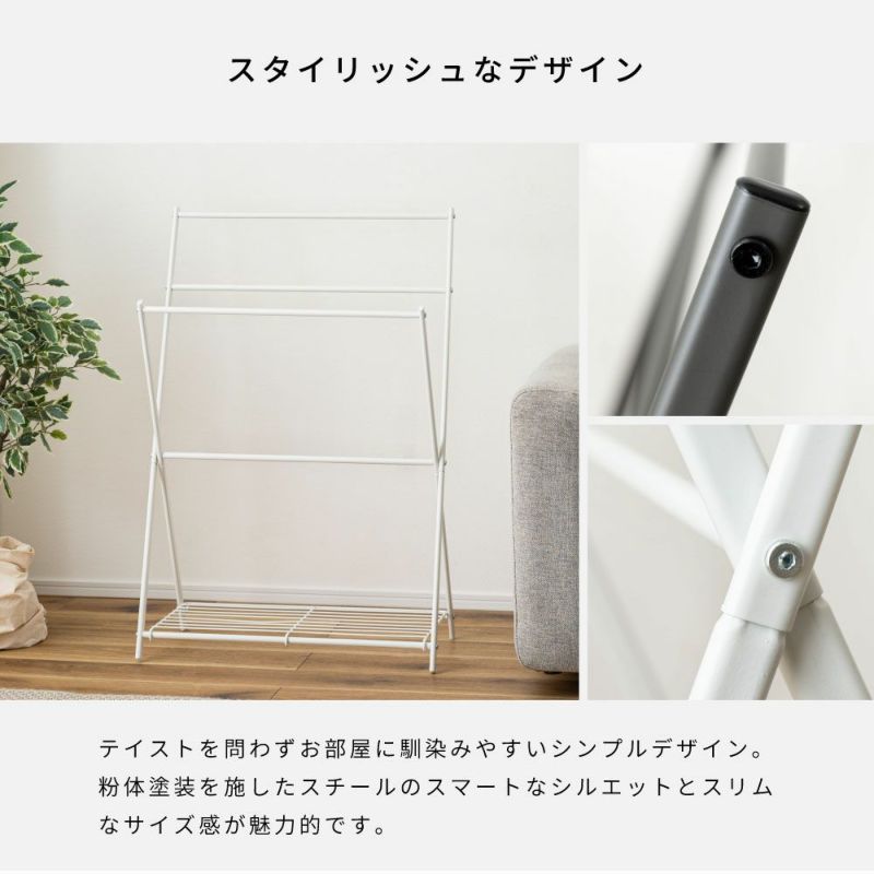 タオルラック 折りたたみ おしゃれ シンプル コンパクト ハンガーラック スリム 省スペース 棚付き 下棚 ディスプレイ 部屋干し 室内干し タオル干し 北欧 軽い