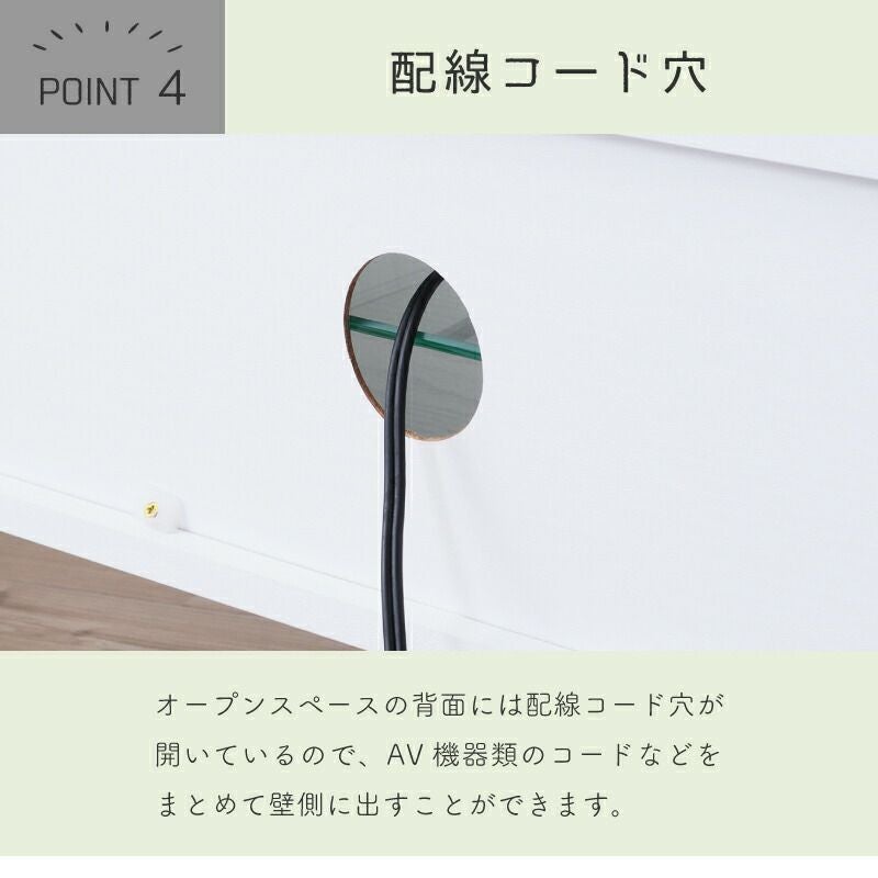オープンスペースの背面には配線コード穴が開いているので、AV機器類のコードなどをまとめて壁側に出すことができます。