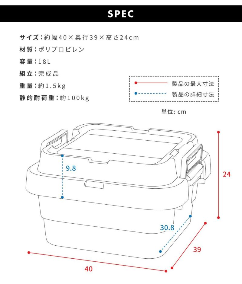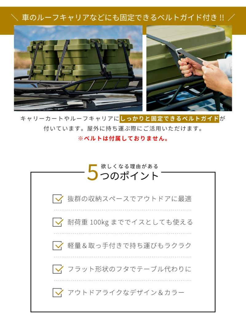 トランクカーゴ 18L 高さ24cm 座れる 収納ボックス 収納ケース フタ付き おしゃれ コンテナボックス 積み重ね 軽い ベルトガイド プラスチック アウトドア 防災