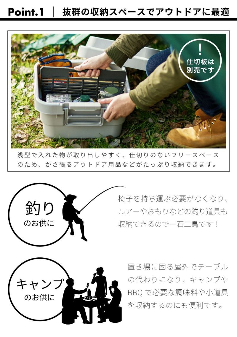 キャンプ必携の収納コンテナ トランクカーゴ 18L 浅型 スタッキング可|TRUNK CARGO