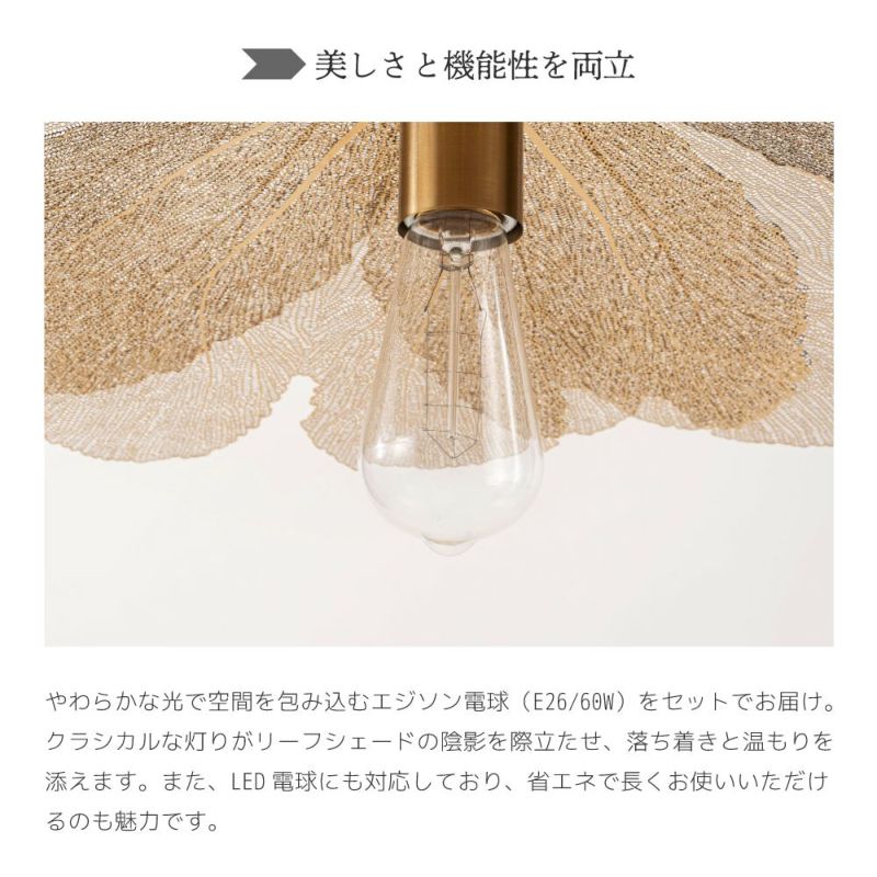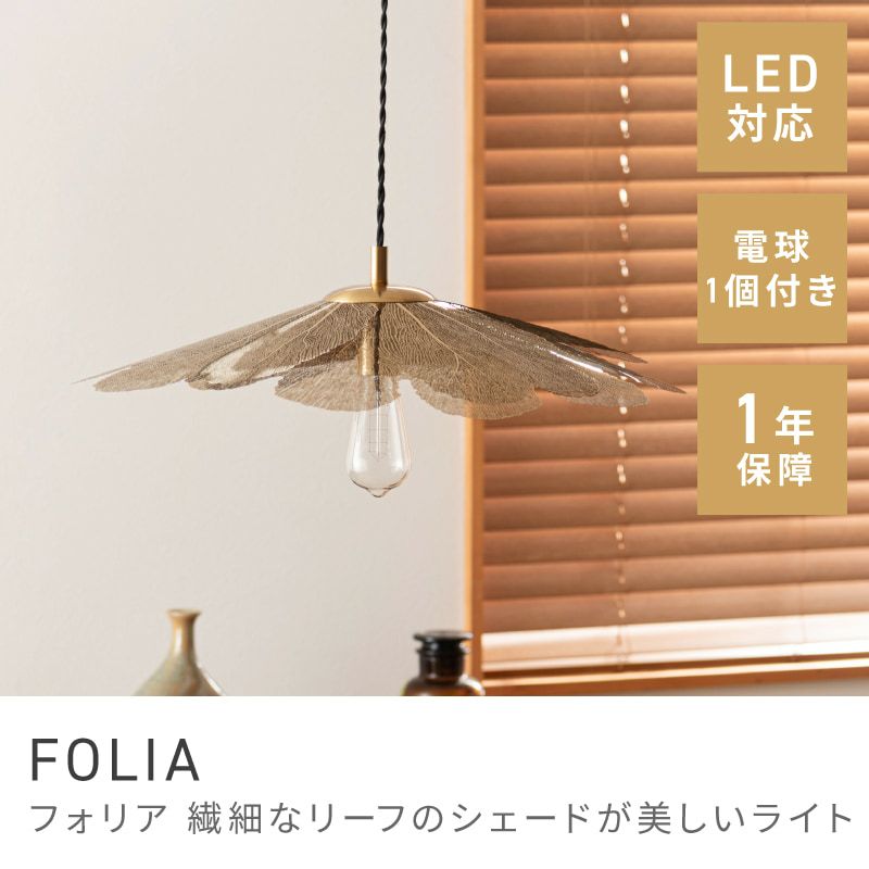 繊細なリーフのシェードが美しいライト ペンダントライト 照明 間接照明 シンプル LED電球対応 吊り下げ照明|FOLIA