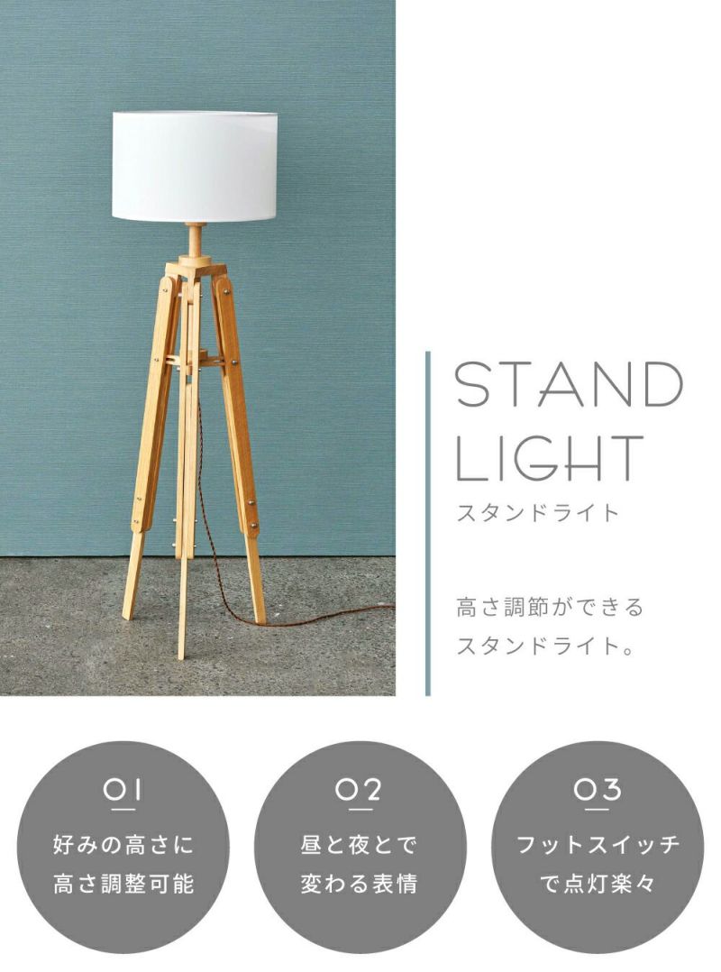 フロアライト おしゃれ 北欧 led スタンドライト 明るい 照明 ライト 白熱電球 エジソン電球 電球付き おしゃれ フットスイッチ 高さ調節 ナチュラル 天然木