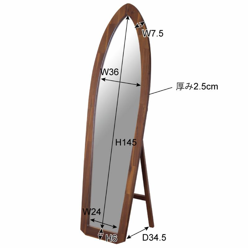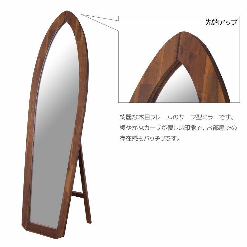 鏡 全身鏡 ミラー サーフミラー スタンドミラー サーフボード型 姿見 飛散防止 モダン 木製 木目 おしゃれ 完成品 マリンルック 海 夏 アジアン 南国 リゾート