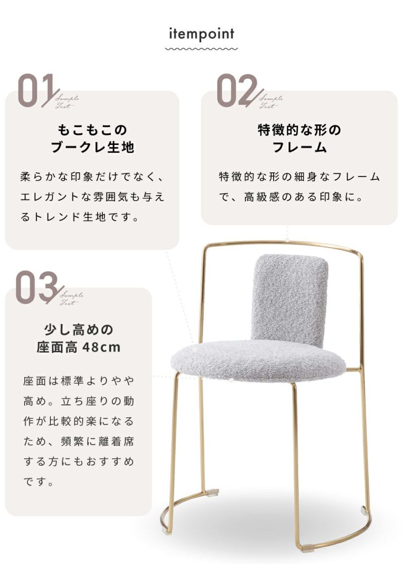 もこもこのブークレ生地のダイニングチェア ダイニングチェア 座面高48cm 椅子 チェア いす イス 一人掛け リビング|Rowan