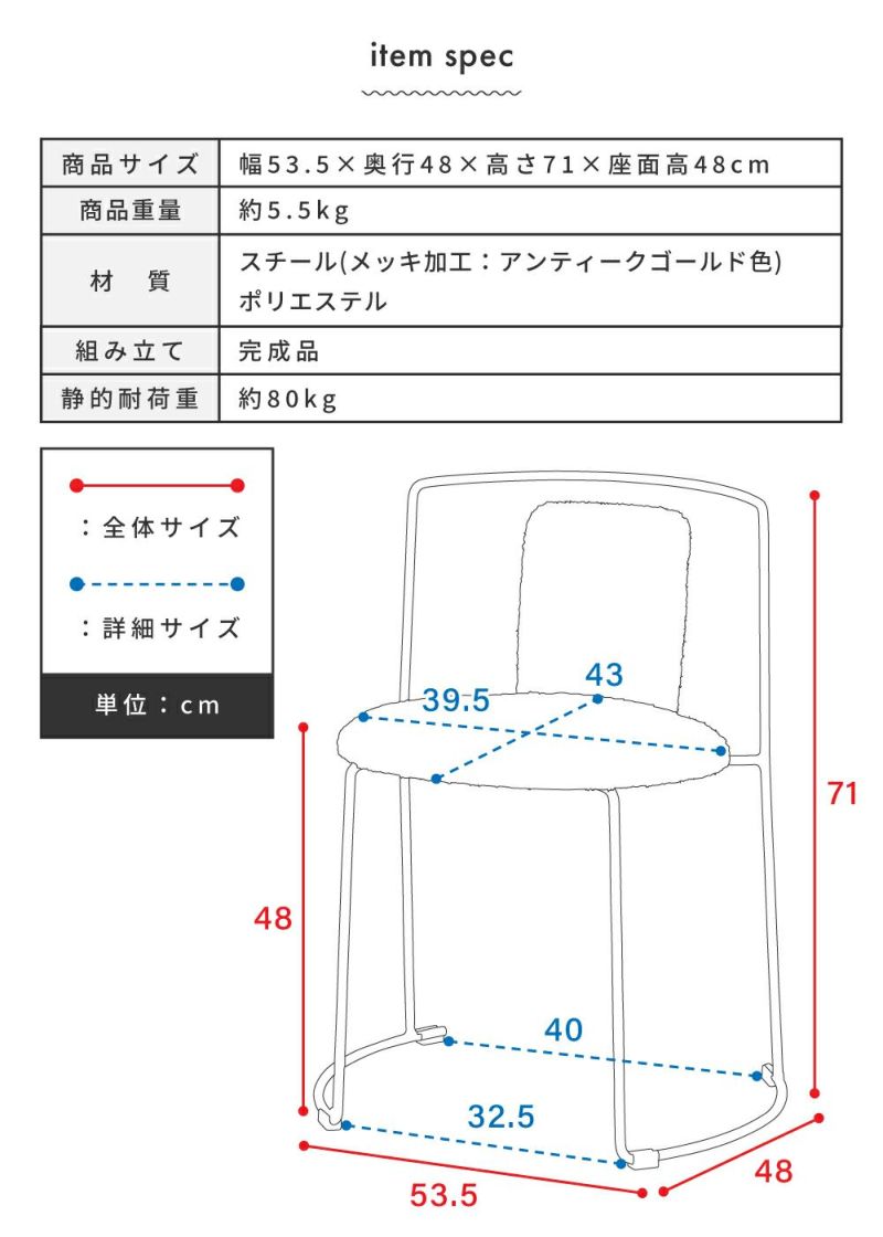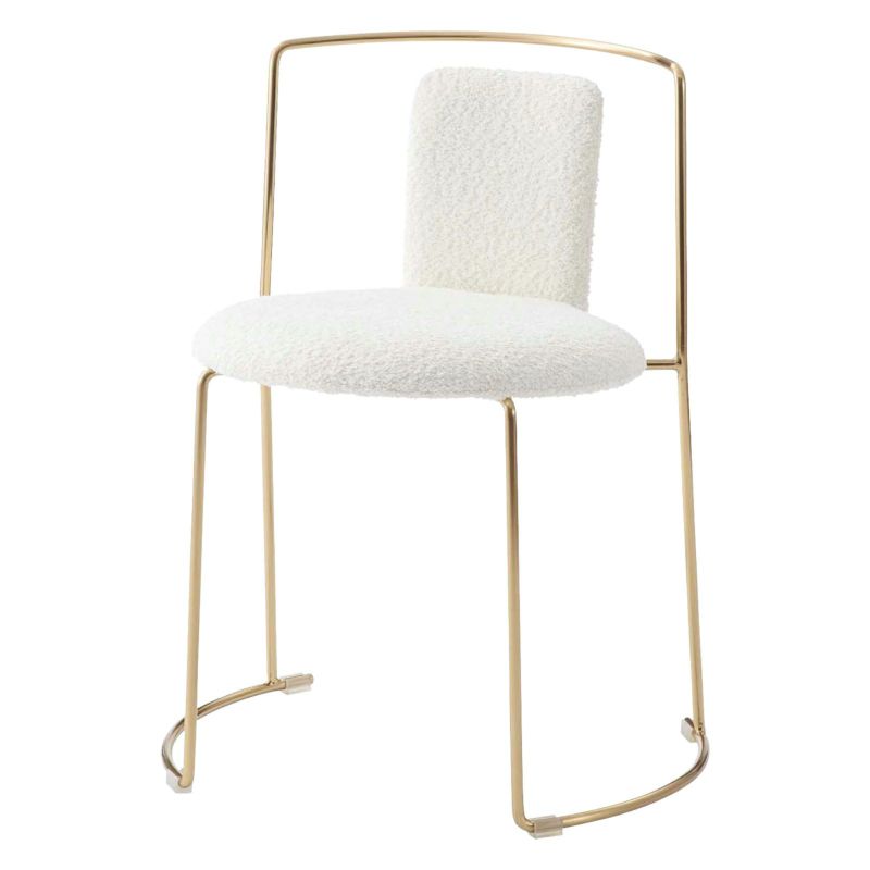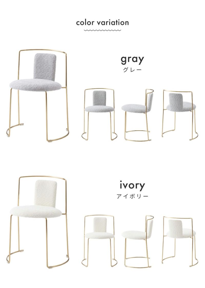 ダイニングチェア 座面高48 椅子 丸 おしゃれ 幅53.5 完成品 北欧 ブークレ生地 ゴールド かわいい デスクチェア 一人掛け 単品販売 ドレッサー イス 韓国