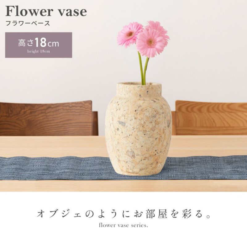 花瓶 おしゃれ フラワーベース 高さ18 サンドストーン 北欧 石目 完成品 一輪挿し コンパクト 玄関 壺 卓上 高級感 和室 観葉植物 収納 アート 雑貨 インテリア