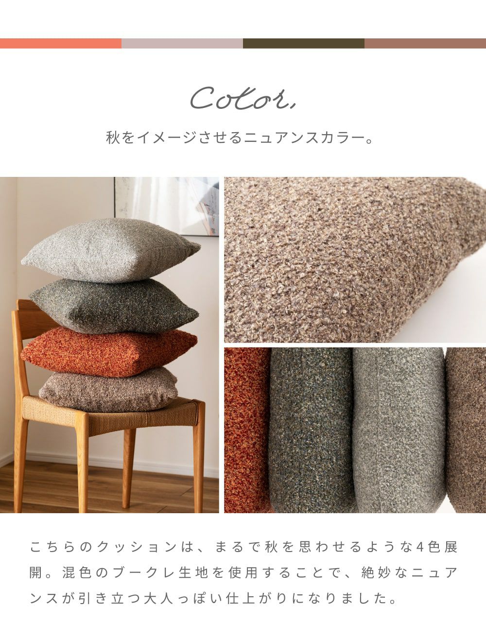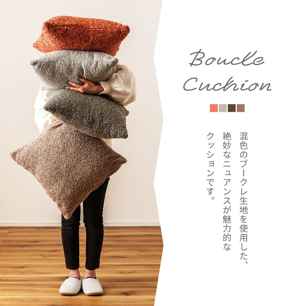 他の画像を見る 混色のブークレ生地を使用したクッション クッション 枕 ブークレ生地 ニュアンスカラー 45cm ソファ フロア 床|NOKA 完成品 ¥ 3,872 税込 (0) お気に入りに登録する