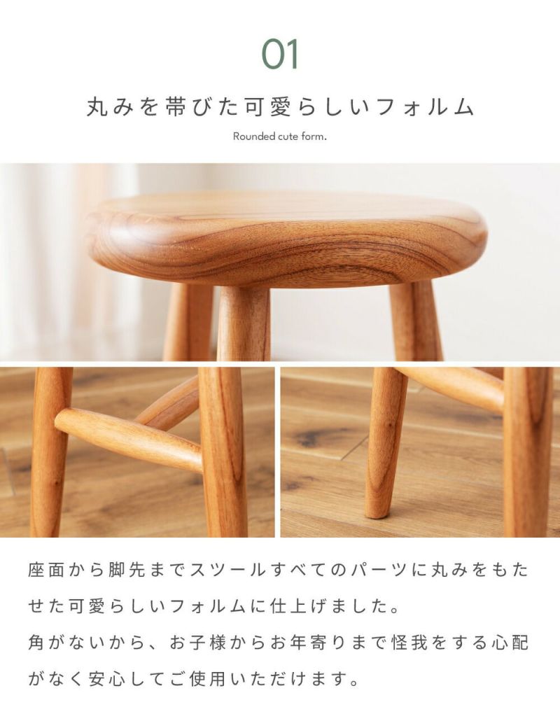 座面から脚先までスツールすべてのパーツに丸みをもたせた可愛らしいフォルムに仕上げました。