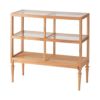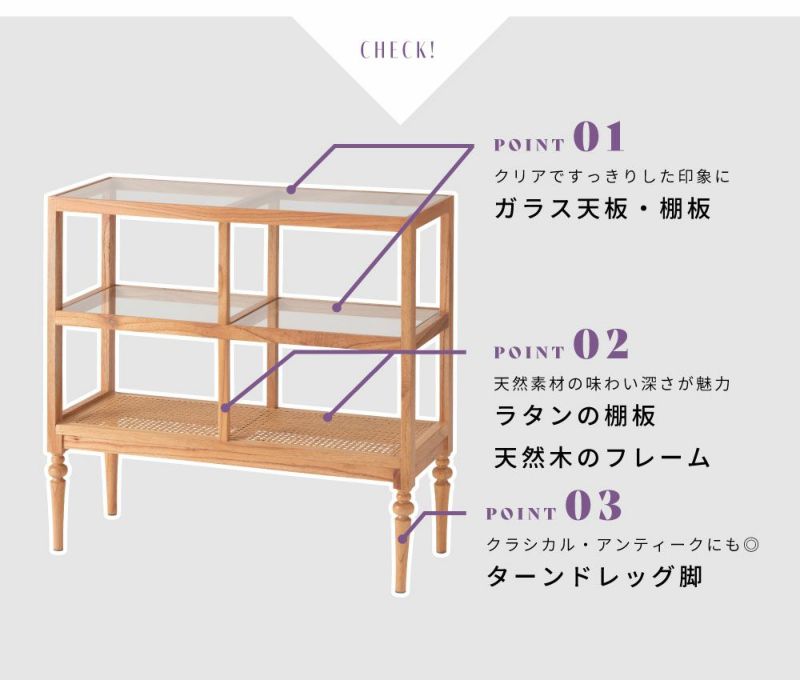 オープンシェルフ 三段 木製 ガラス クリア ラタン 籐 ワイド アンティーク ろくろ脚 ブラック ナチュラル 北欧 モダン シンプル 透明 幅40 推し棚 リビング